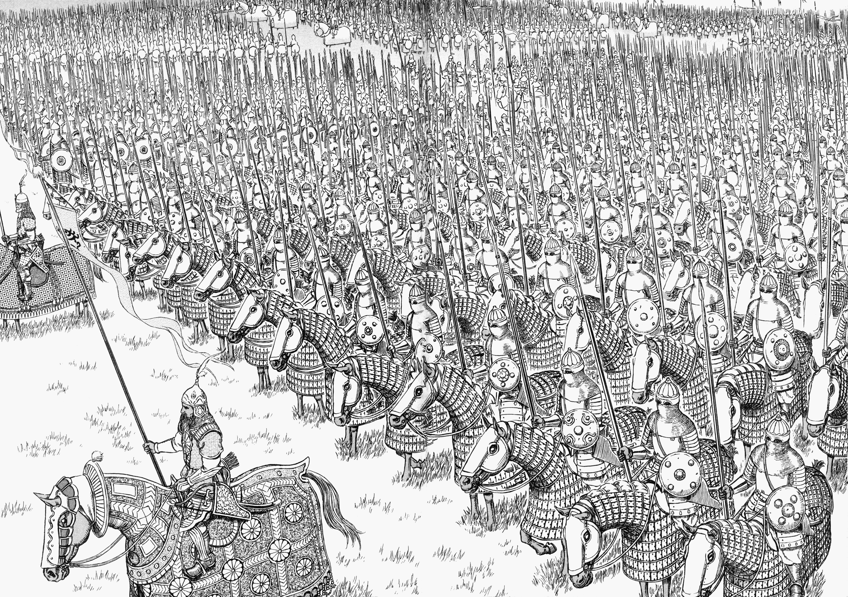 Kushan army. Here we can see how great is Miura’s attention to detail: every soldier are dressed the same but each one of them are distinct, each with his own pose.