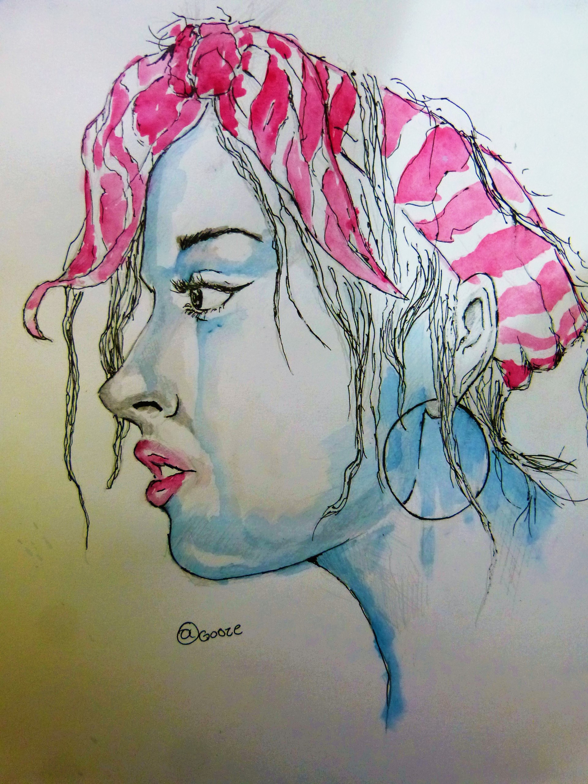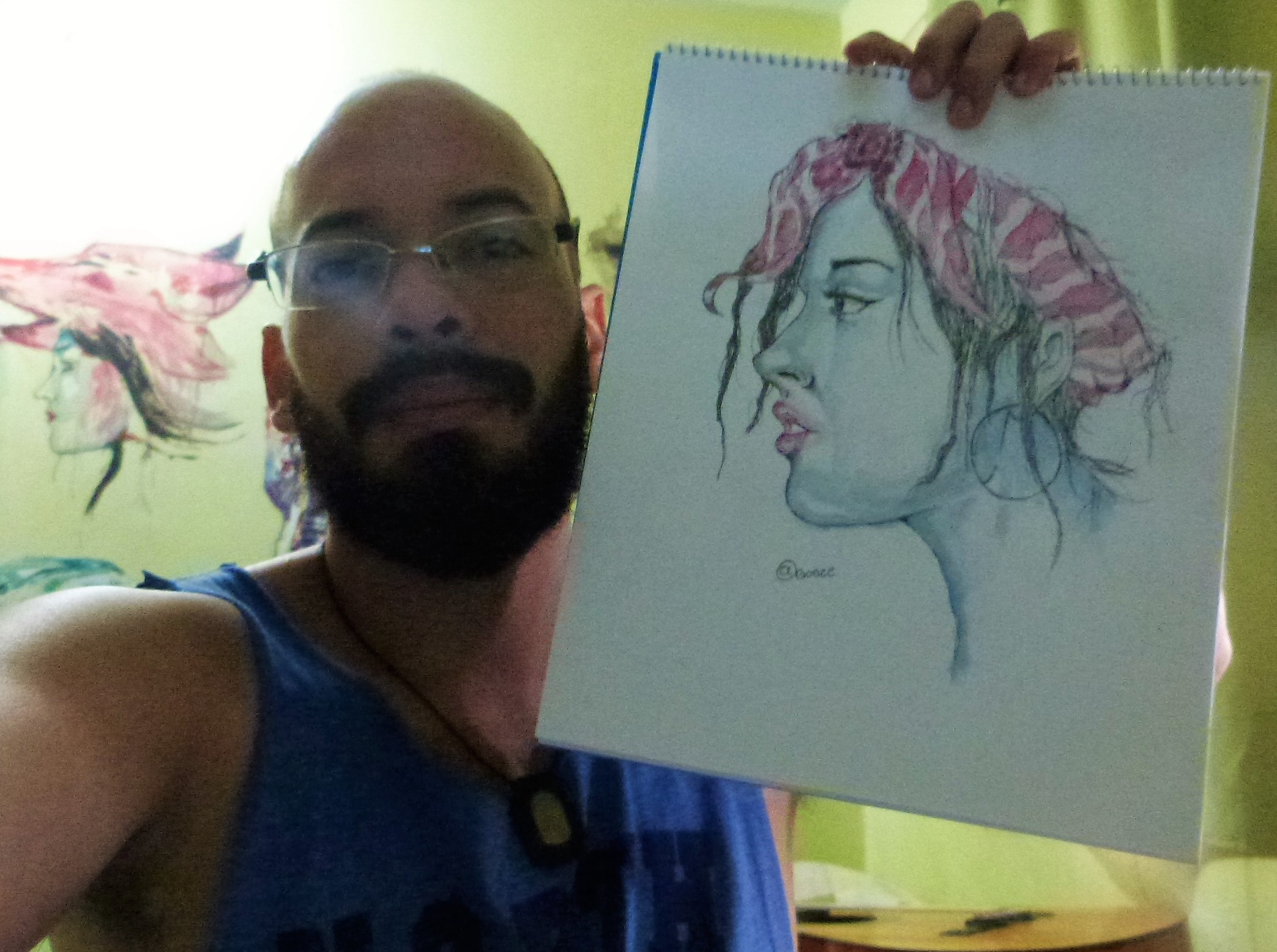 she decided to send me a picture of her face looking right for me to paint her like a profile picture they take in the police, this was because her father is a policeman and she is kind of a bad girl always getting into trouble and her father is always telling her I hope I never see your picture in the 'wanted' board, so she is getting him a painting. kind of reckless this friend of mine.