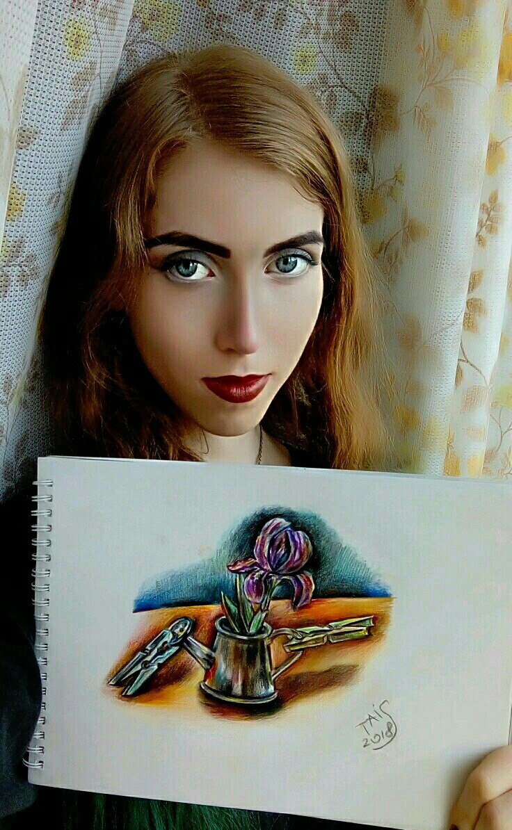 "Iris in a watering can or a small life"gosuici (53)in #art • 8 years ago Hello! Today I would like to show you my new drawing. The painting depicts a flower standing in a watering can. How do you find this exposition? #creative #drawing #photography #artzone