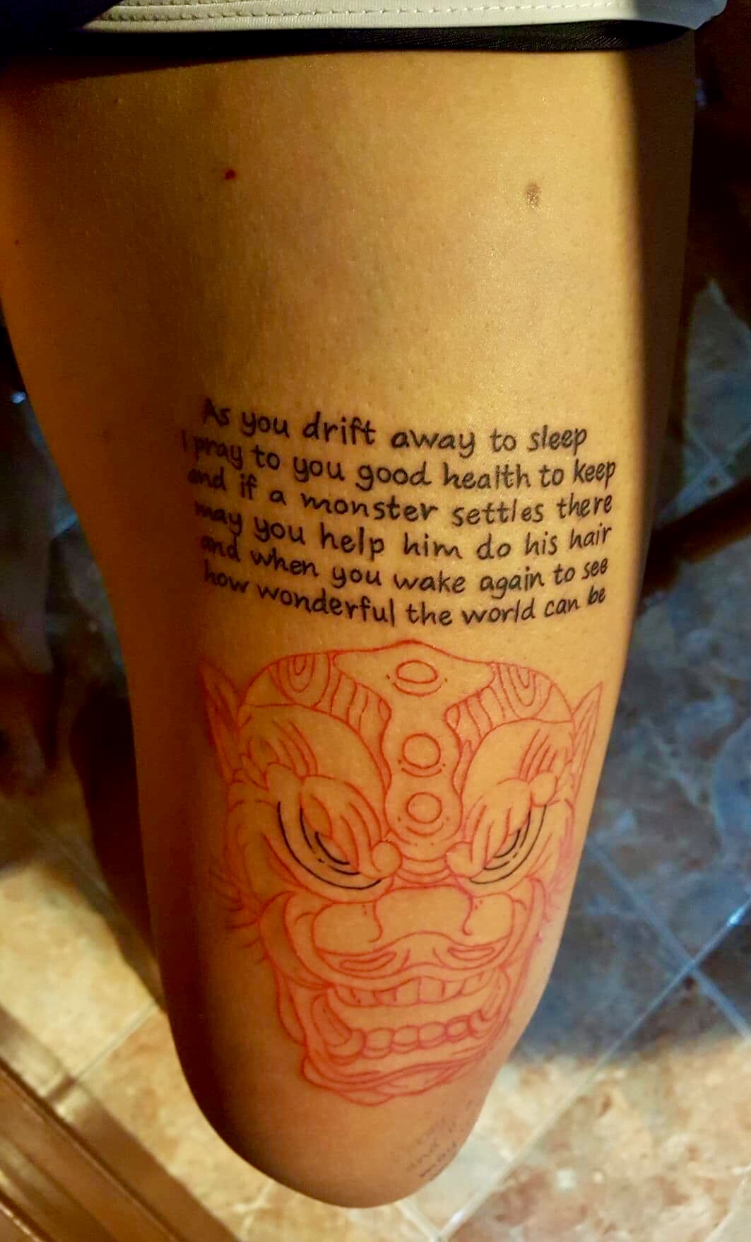 In short, a good friend of mine was having a bad day and I wrote her a poem to help her feel better; she liked it so much she designed a tattoo and had it done yesterday!