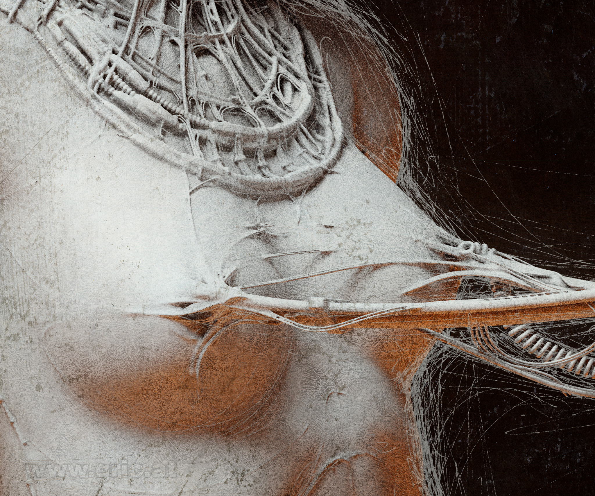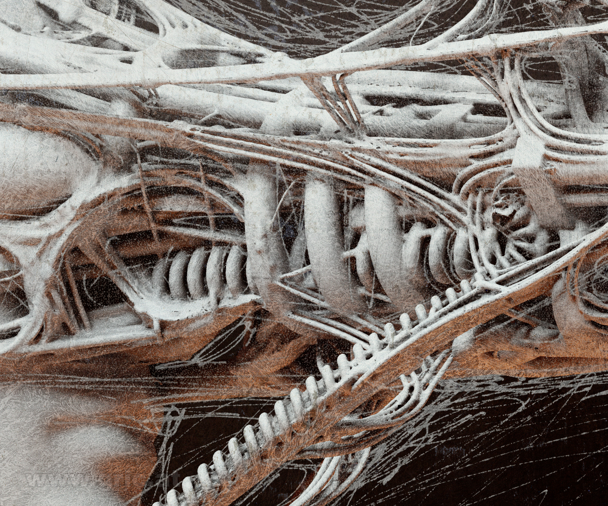 Initially I used this 3D-concept as a reference for my painting/drawing series Synchronization. Here I used the 3D-rendering in combination with ink pens and acrylic textures. The image resolution of 12000 x 10000 pixels allows very detailed canvas prints up to a width of 40 inch (~101 cm) at 300 dpi, or 80 inch (~203 cm) at 150 dpi.