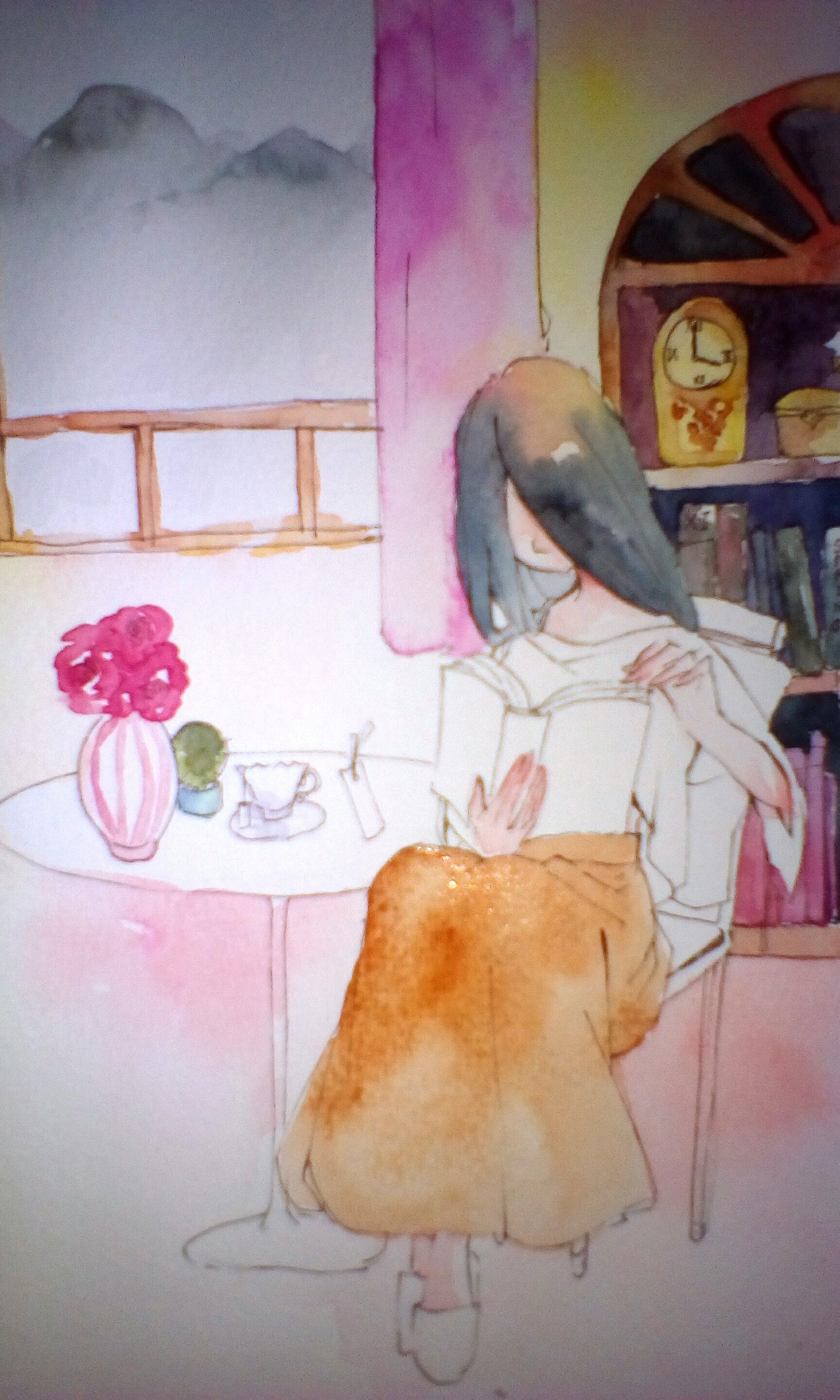 This time I tried to draw a girl with some background-----I rarely drew background in my art work ; w ; It's not good so sometime I though I should practice more.