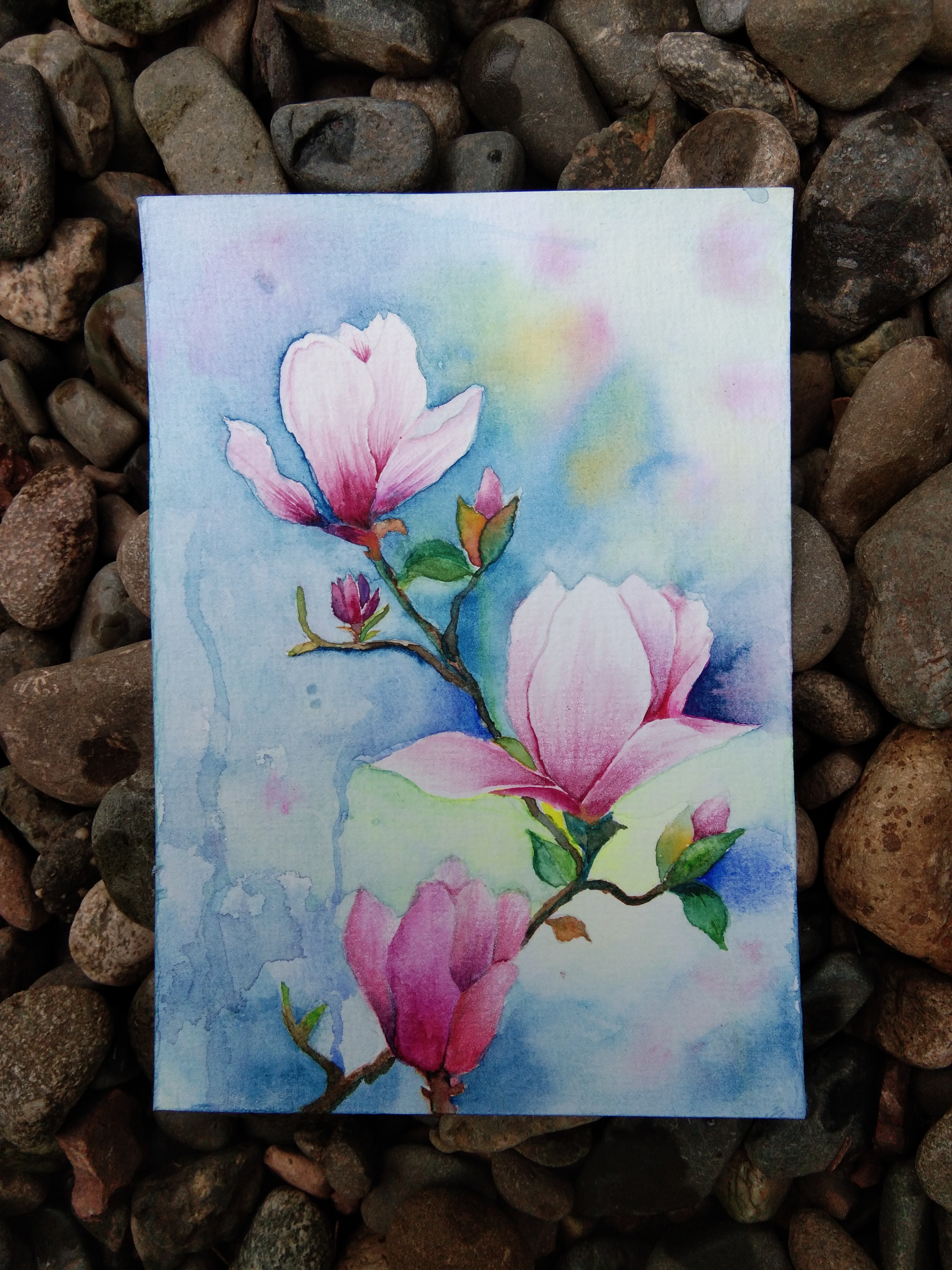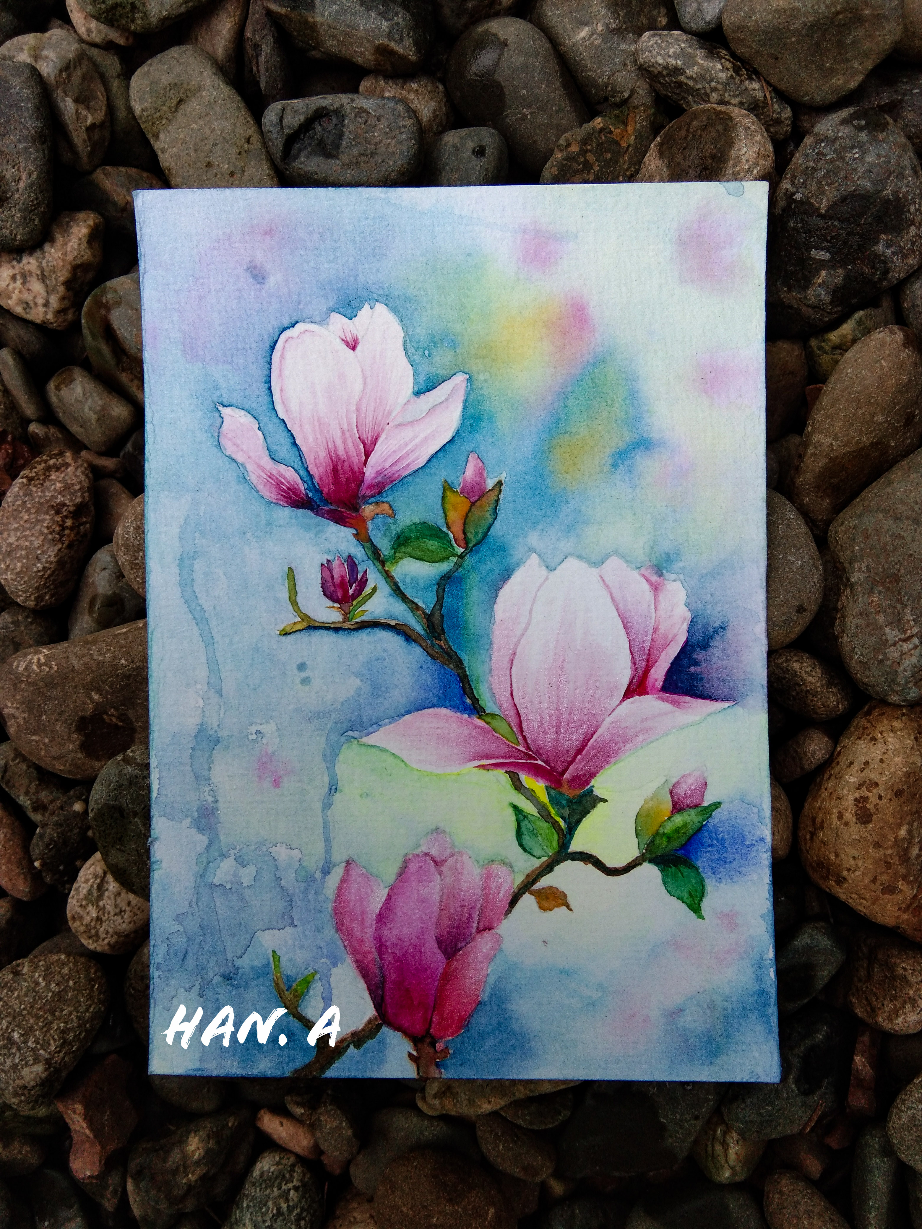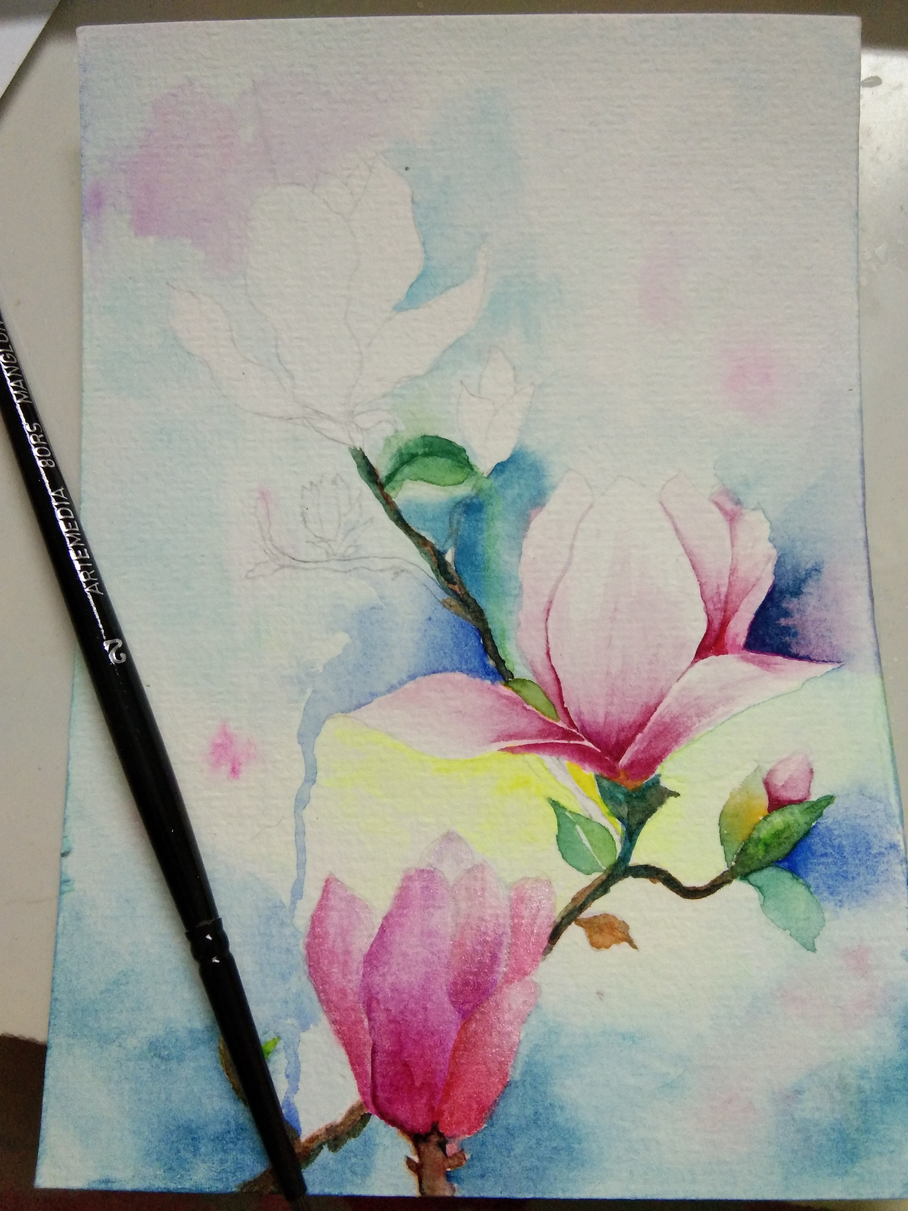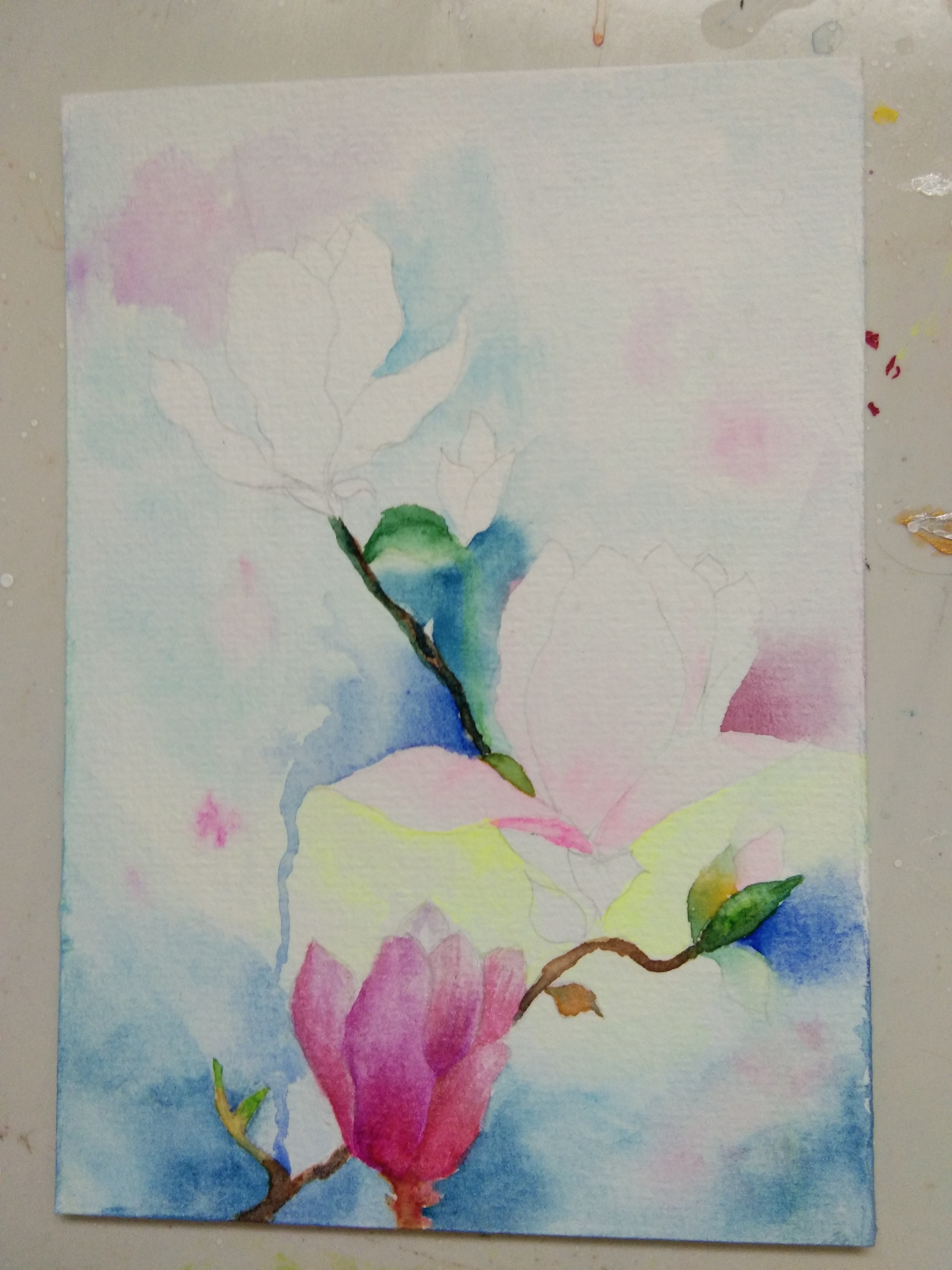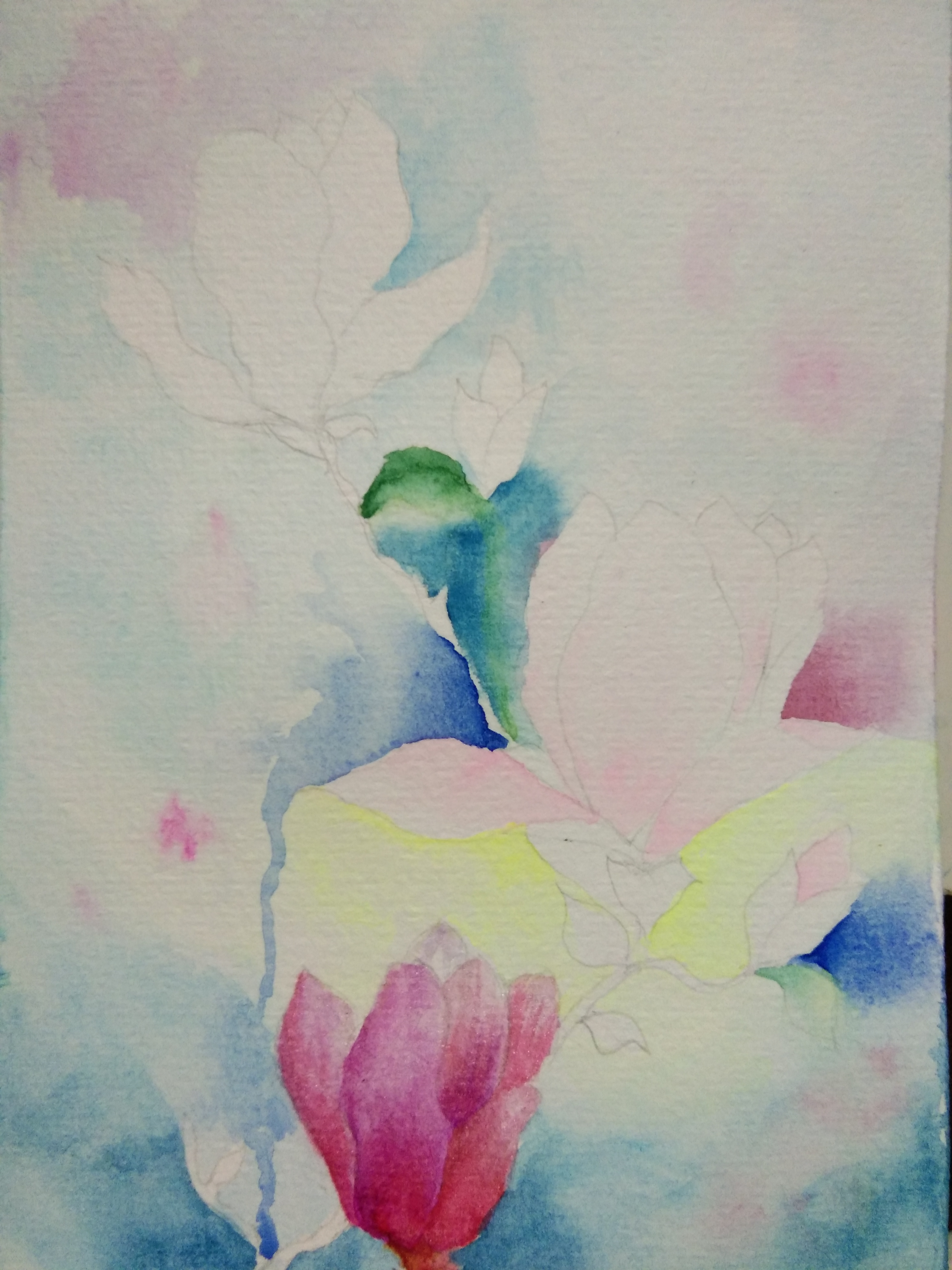 Working on the 1st layer : Wet the paper, then spread some colors on it, wait until it dry.
