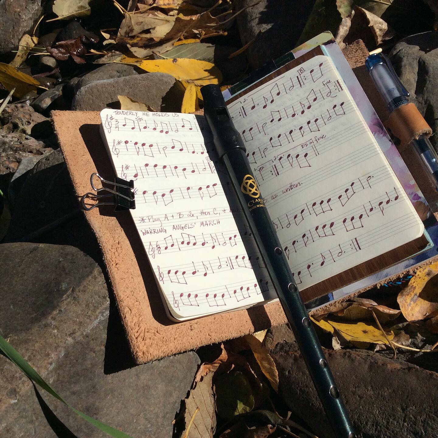 I found one of my old tunebooks from last year and had fun copying my music into my #travelersnotebook. I made the blank manuscript insert from a hardcover moleskine music notebook that I dismantled and re-stitched in a size that would fit. I want to get back into composing again. There is something special about playing music written from that deep place in your soul. 🎶 I am ready to stretch my wings again.