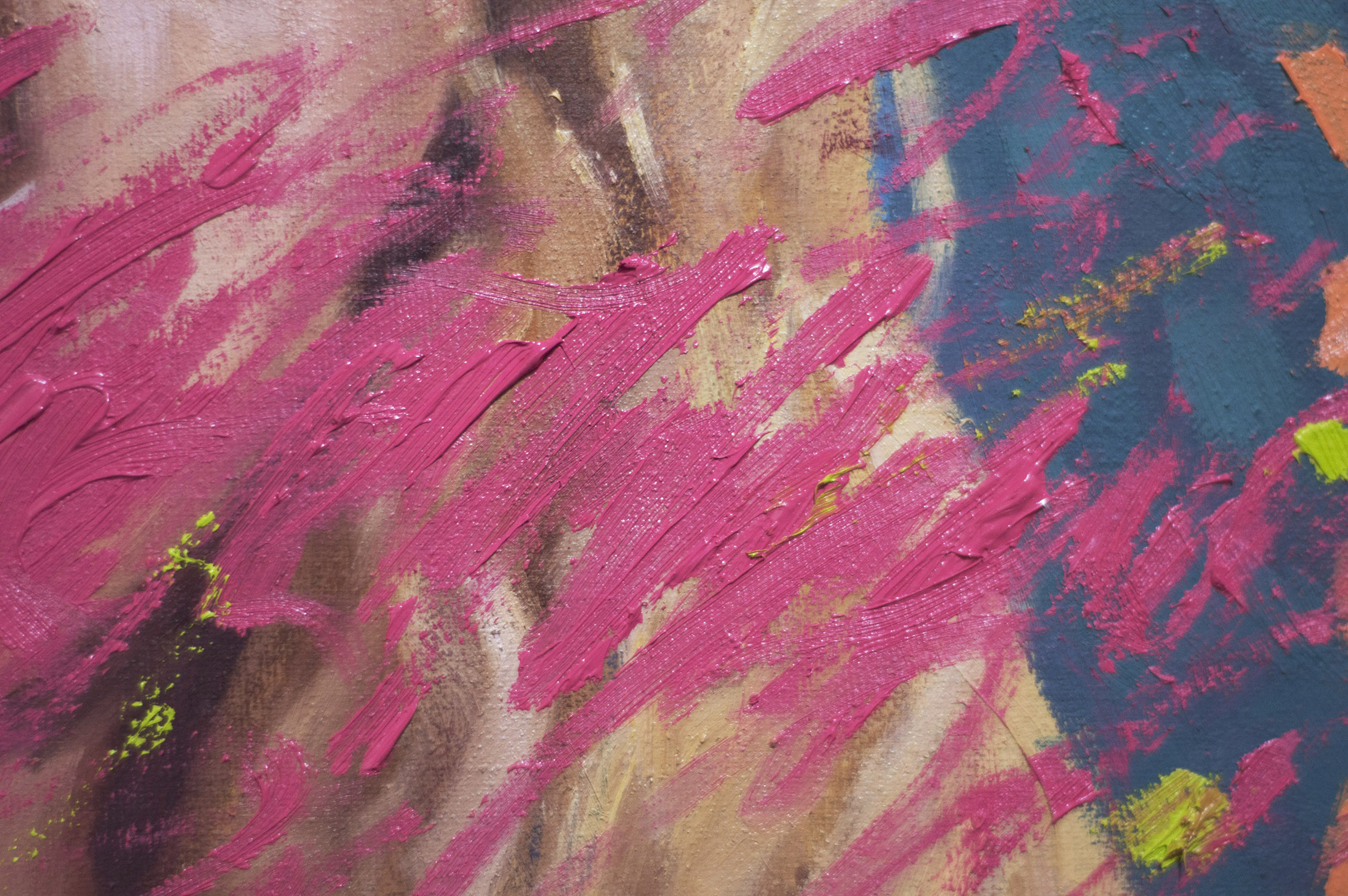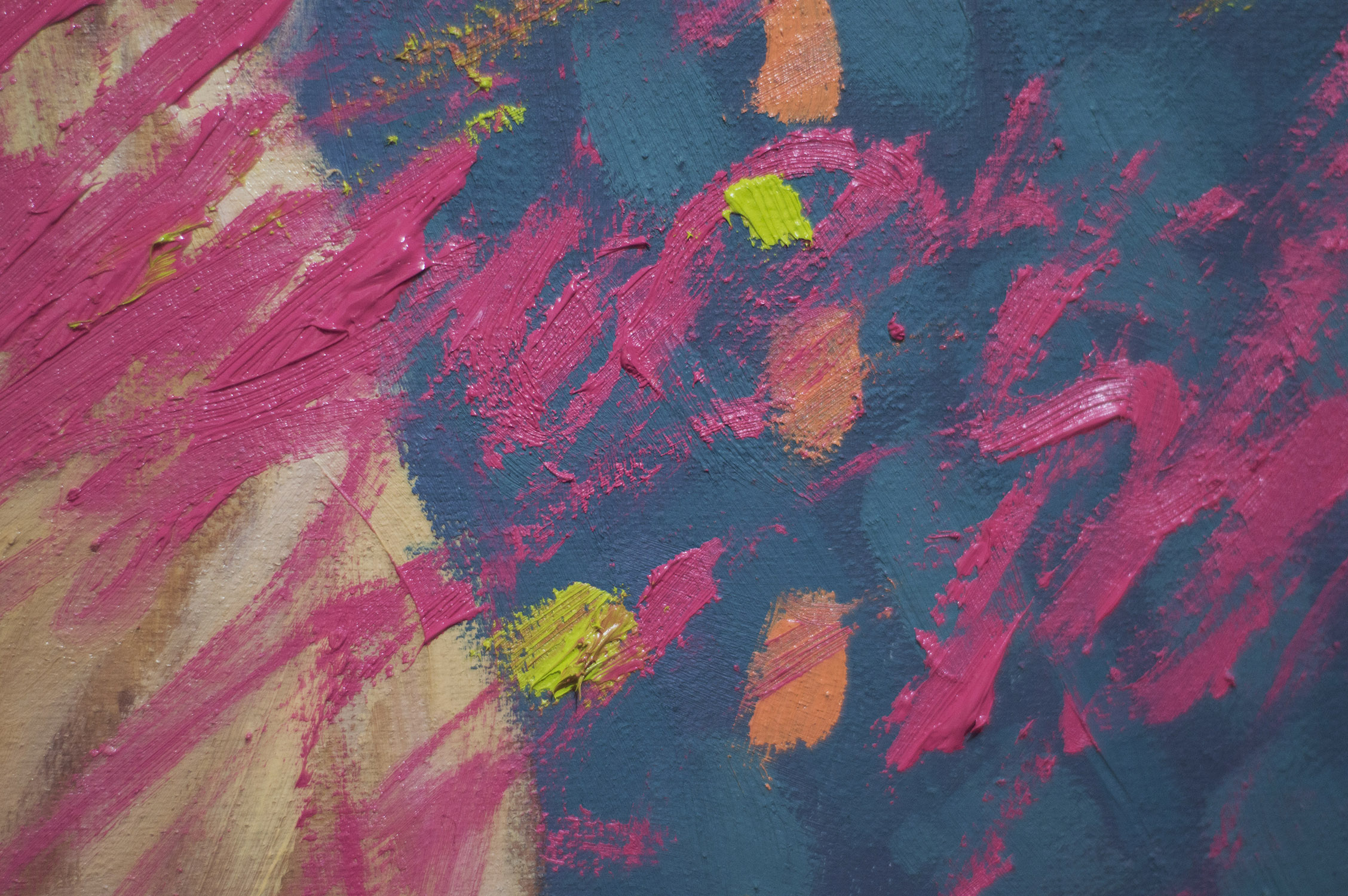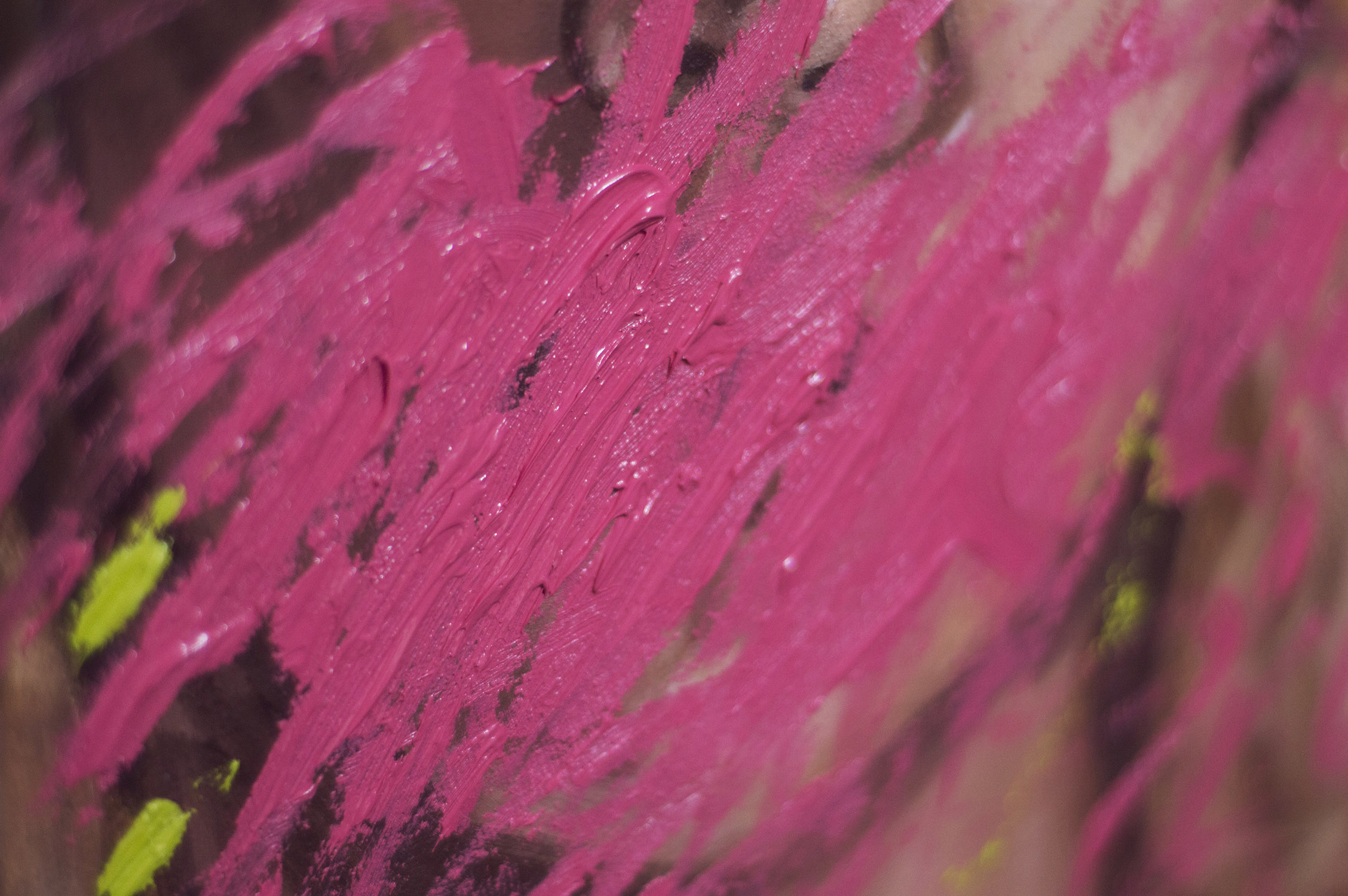 That's awesome. I like the colours and the brush strokes. It looks like tye bubble gum popped. The oink offsets the cooler colours nicely.