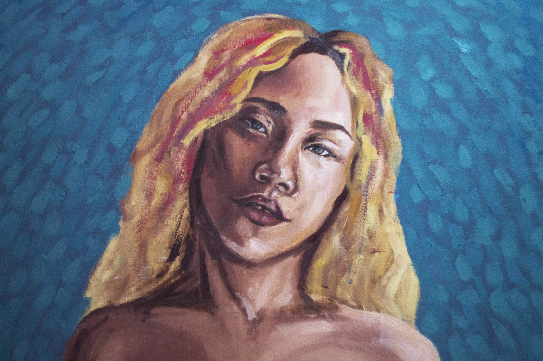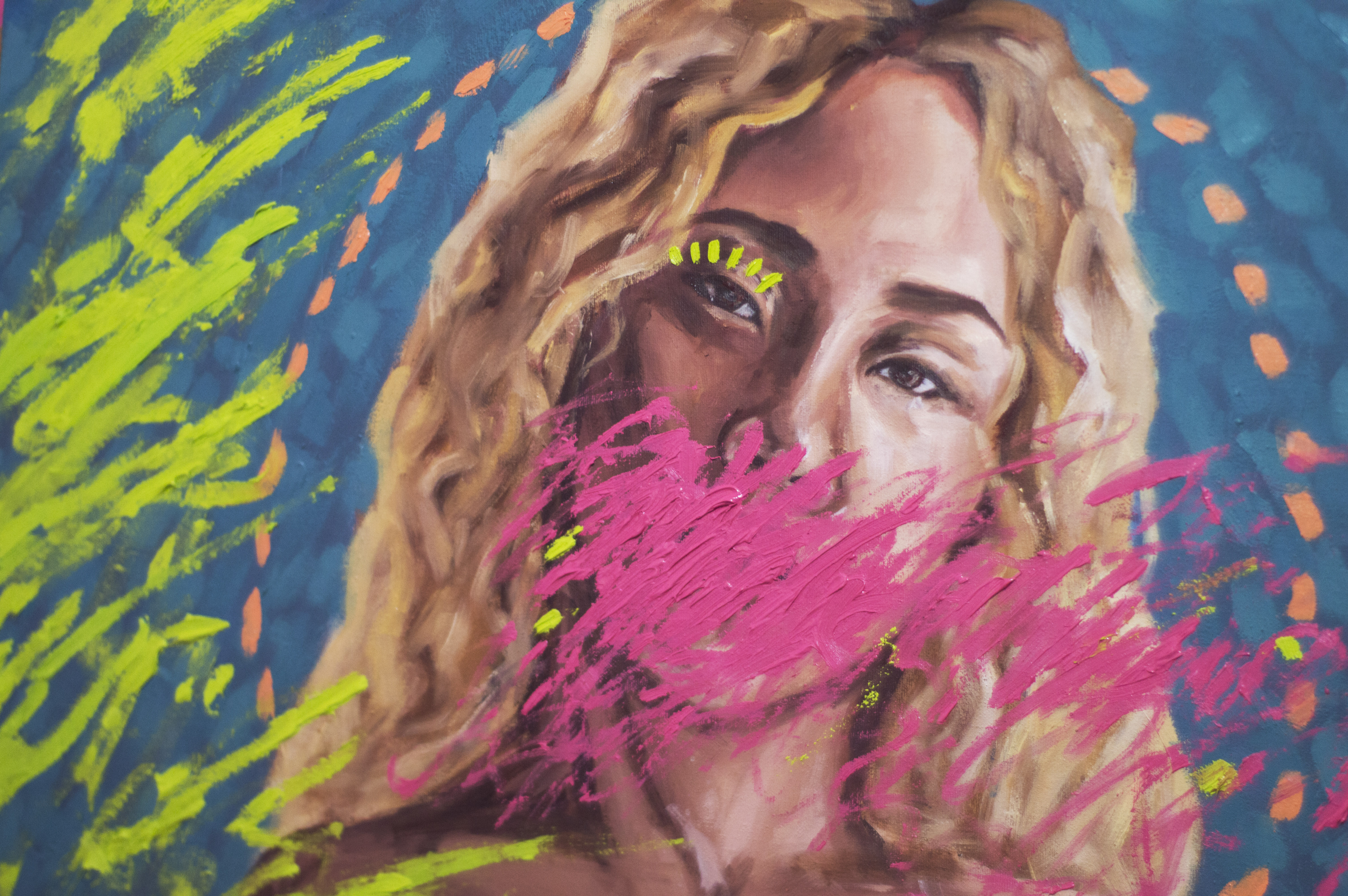 This is really a fantastically unique piece! I love the probably unintentional combination of styles with a somewhat impressionism for your portrait and then this fun, wild layer of abstract over it. Even if you did just let loose and do "whatever", I think it turned out superbly!