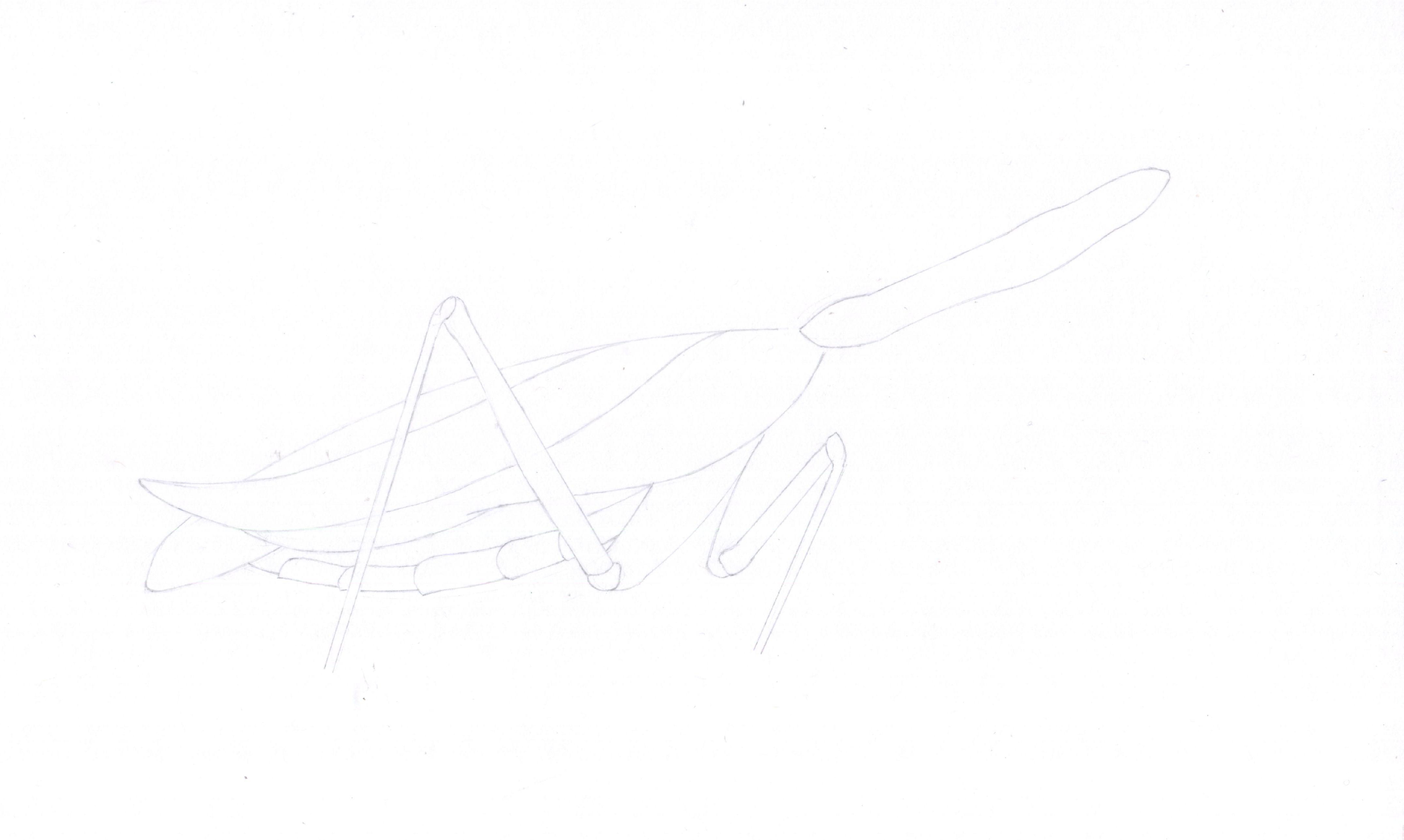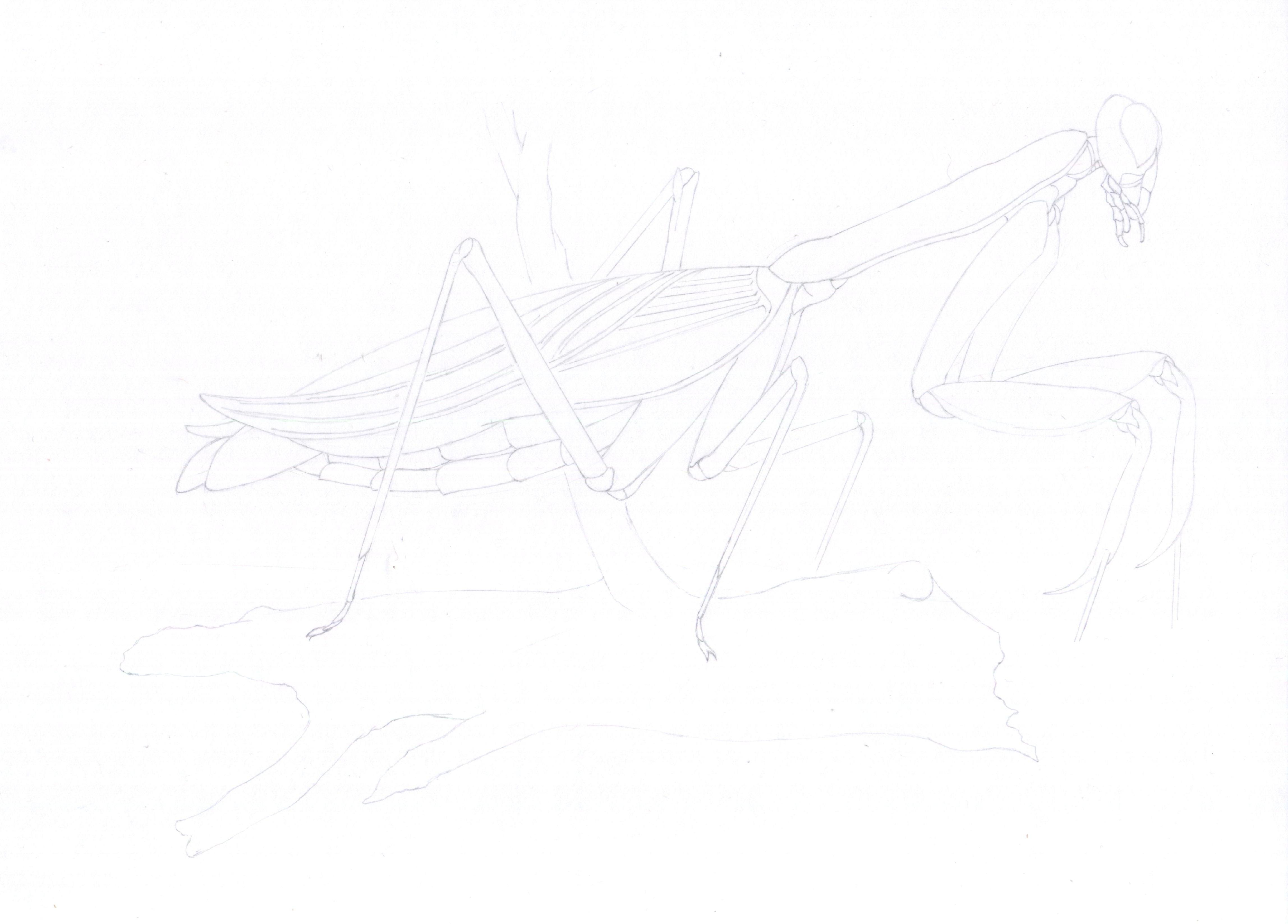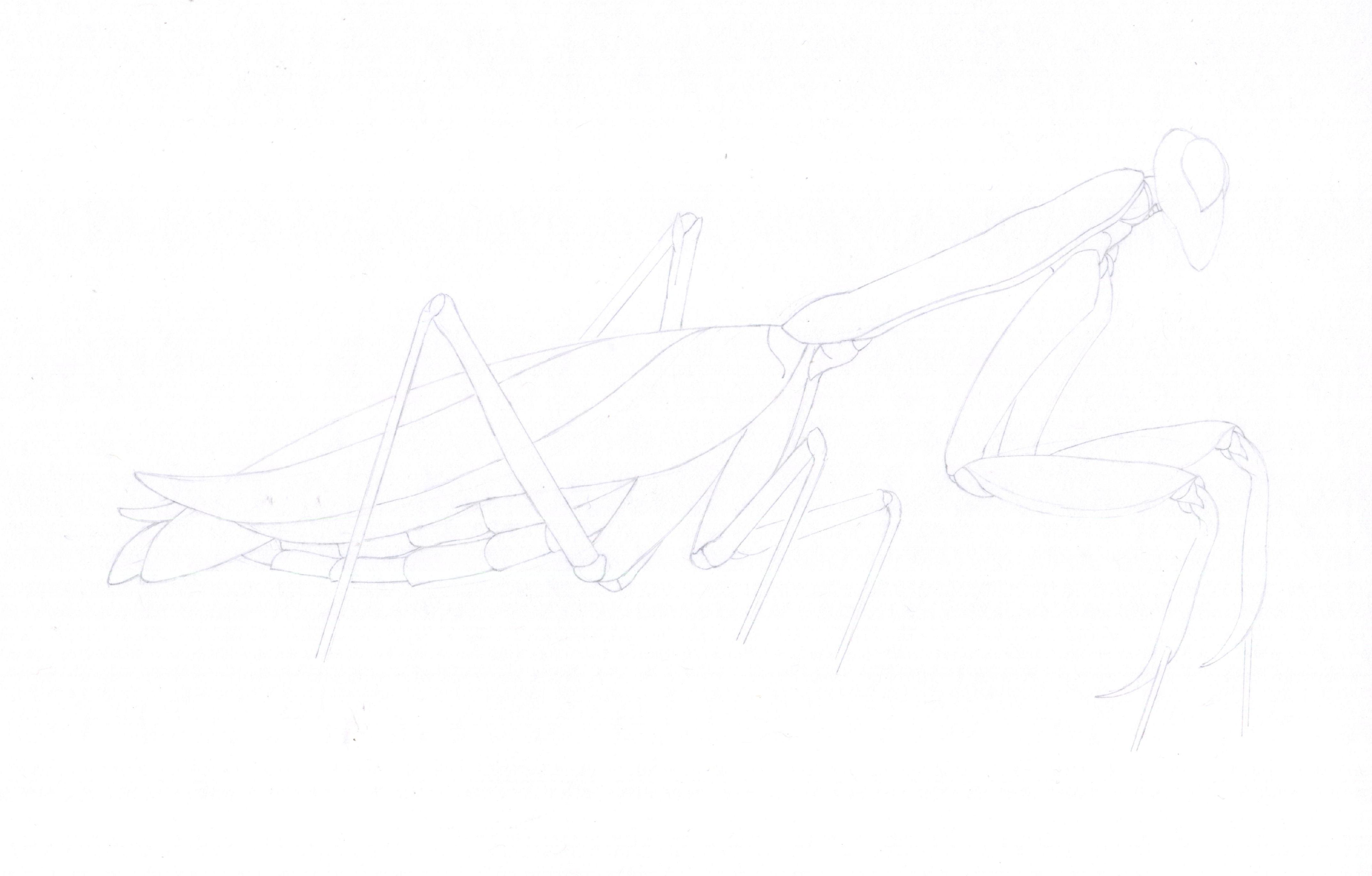 Comencé el trazado por el cuerpo de la mantis, usualmente comienzo por el rostro pero en esta ocasión fue distinto.