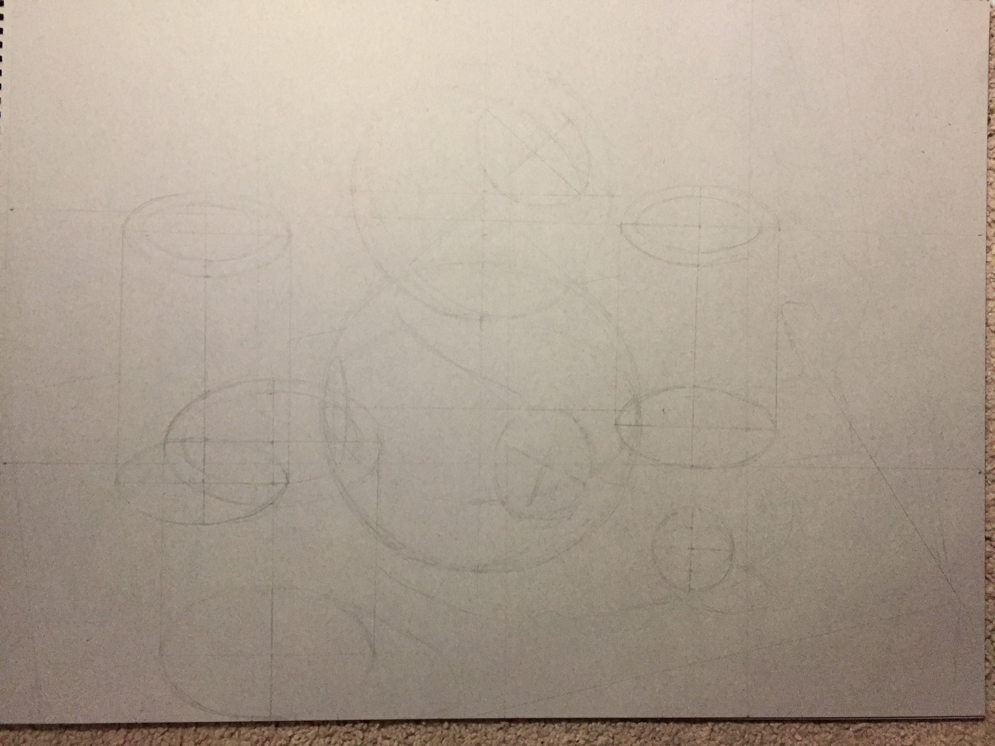 Hey everybody! Long time no see! I'm back again with another charcoal drawing done as an assignment for school. The assignment was to make a composition out of various spheres and cylinders with visible ellipses. The piece was done on 18" x 24" gray-toned paper using black and white charcoal. Here is the result:
