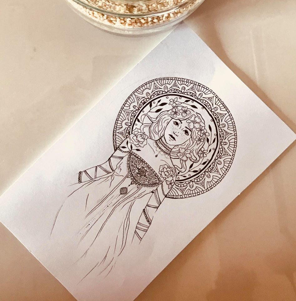 A woman without handsizuales (41)in #art • 7 years ago Drawing, I was inspired by the work of Alfons Mucha. He is my favorite poster artist. Be sure to check his work. #drawing #artzone #new #photo