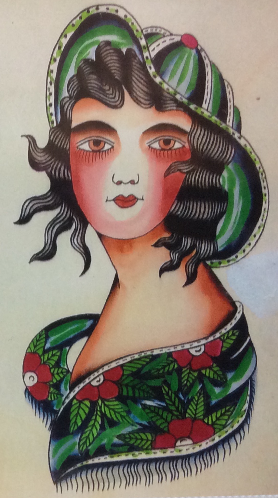 The girl to the right is one of the images I referenced. She was painted by one of my favorites, Bert Grimm. He was born in 1900 in Springfield, MO. He worked in Springfield, and other cities such as Chicago, San Diego, and Long Beach. He ended up in the Pacific Northwest in his later years, where he opened Seatramp Tattoo, Portlands longest running tattoo shop. His tattooing is a great example of stripped down American Traditional. Even though his style was very simple, it was bold, very readable, and had so much impact. I will probably post more on Bert in the future, as he is definitely still one of the biggest influences on modern day traditional tattooing. He definitely has a huge impact on the way I draw and tattoo. If you would like to see more of my work, please follow me on Instagram. Thanks for looking! #tattoo #tattoos #tattooflash #art #painting #blog #bertgrimm
