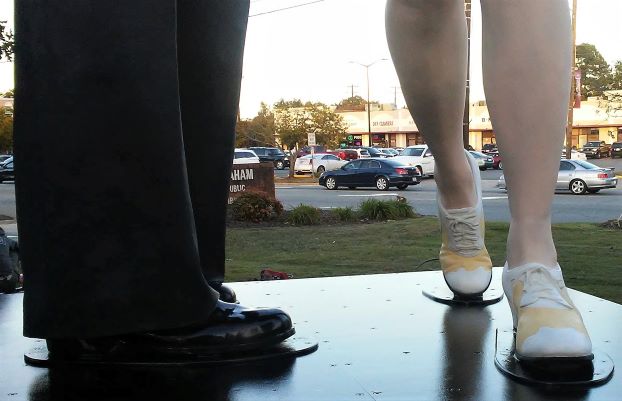 I am sharing the below photo from the Alamance Arts facebook page, because as large as the statue is, no one will ever see it from this view as there are no taller buildings anywhere near it. It was still laying on the flatbed when they took this today. My understanding is it came up from Florida, will be here till sometime in March and then off to New York. Link to their page is below the photo.