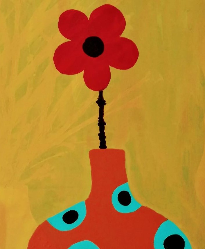 Since the covid crap started (LOL !!) I have been working from home and my work desk needed to be in that backroom where all the waiting art and canvases stay. In moving things around, vwa-la.... there was the half finished whimsical painting. I was kind of happy to see it.