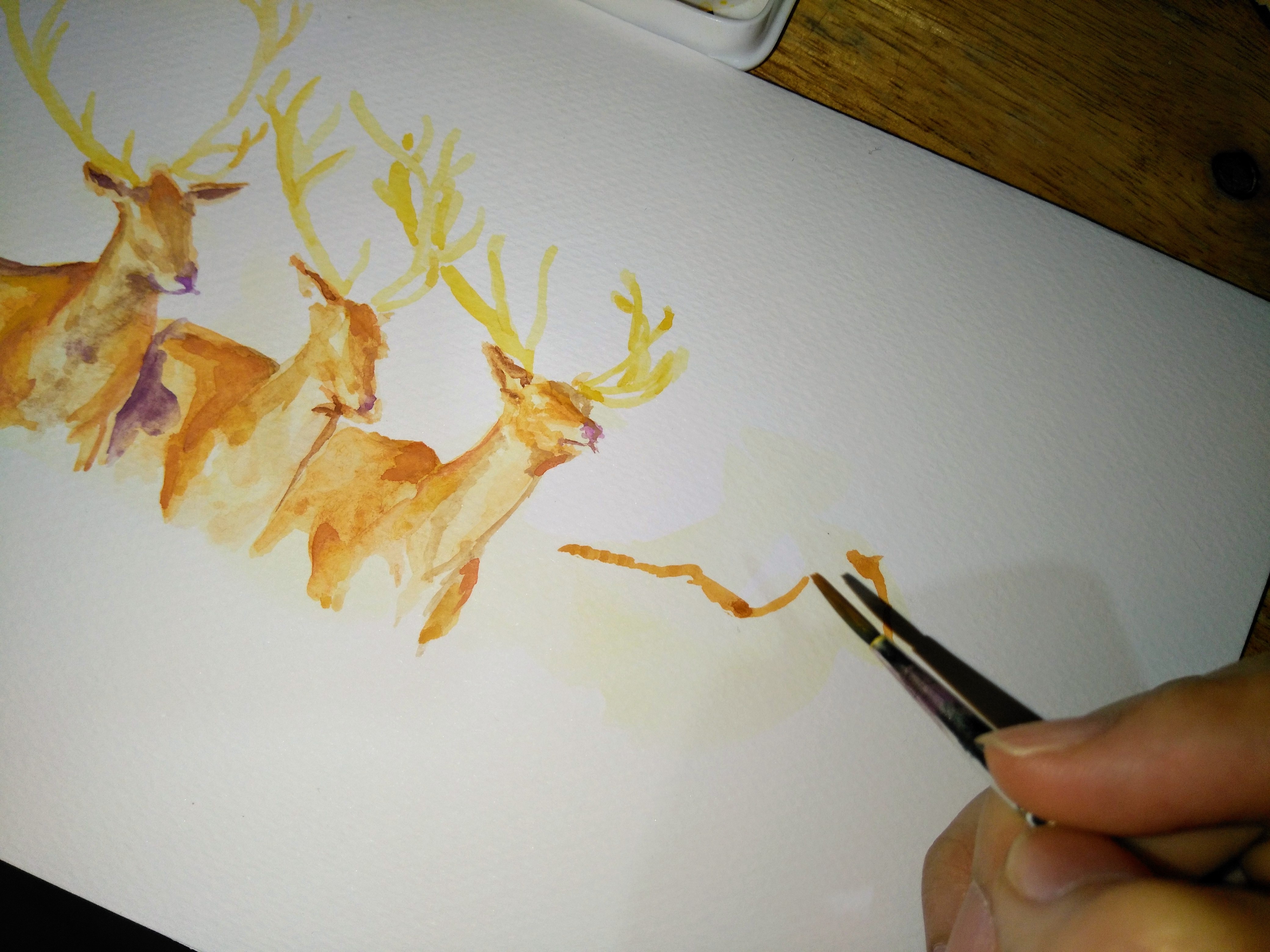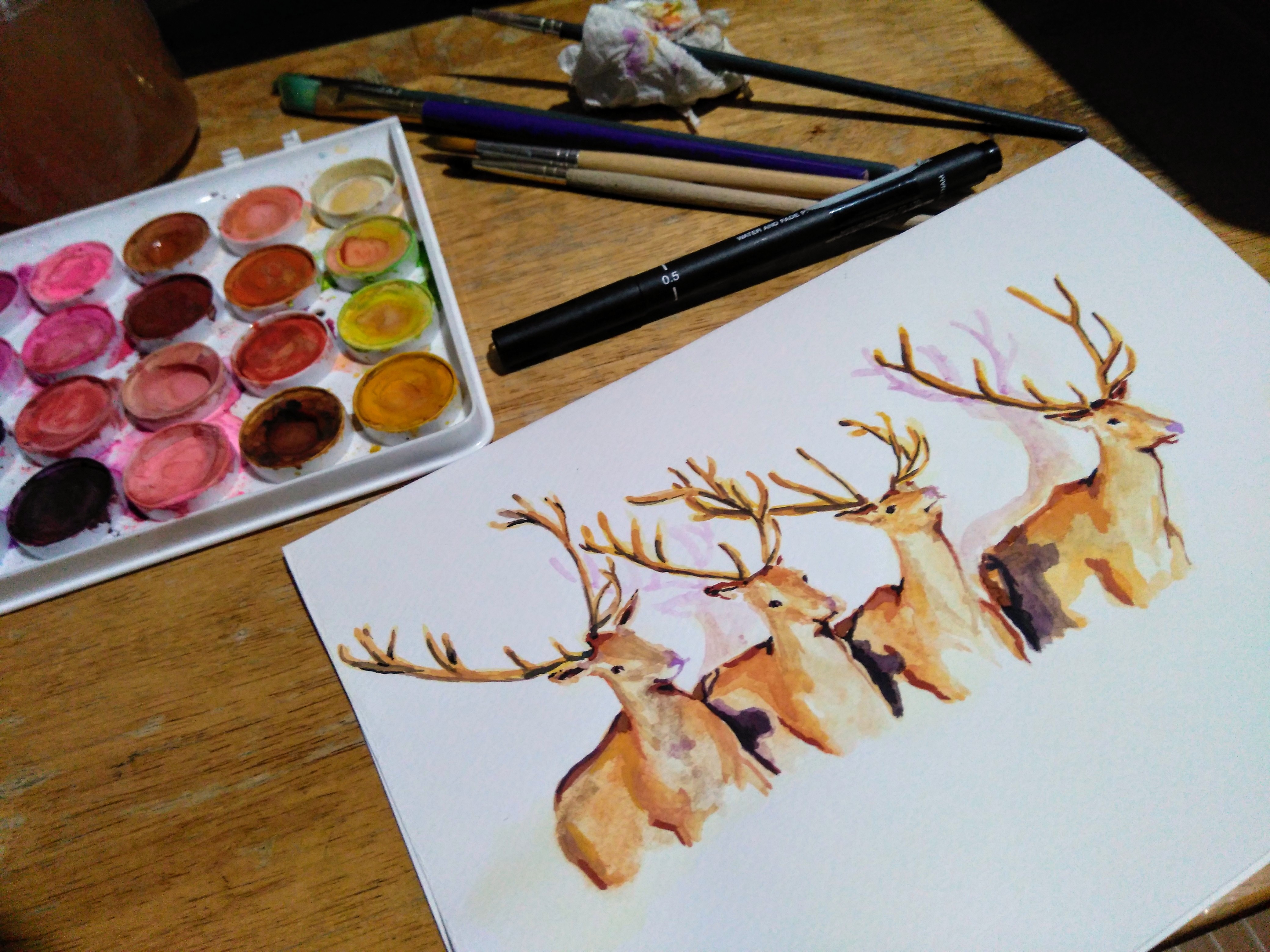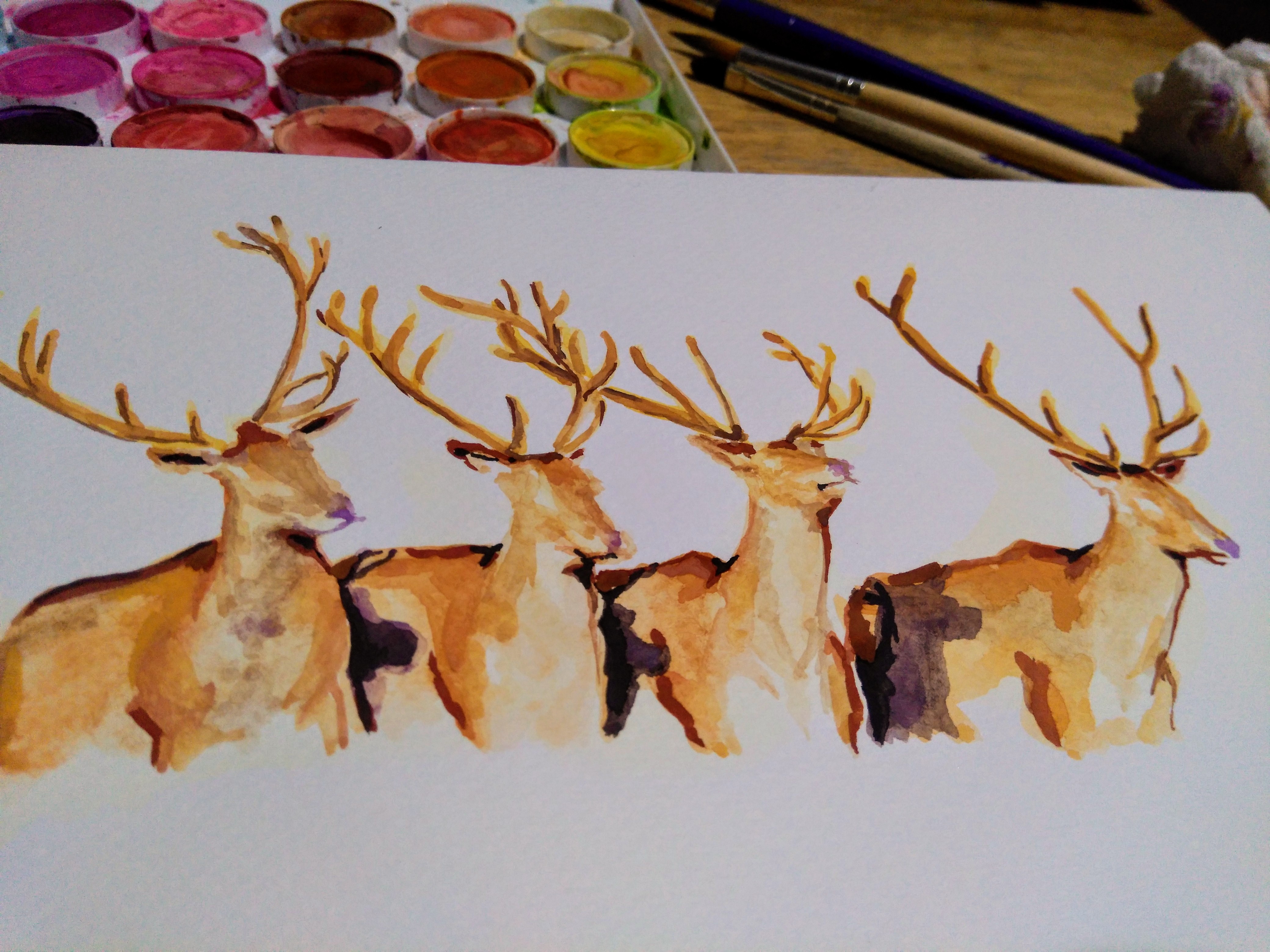 I was scrolling on insta and looking at animal pictures and I came across someone's photography page. I loved the picture of red deers. I asked permission to paint it and he said yeah.