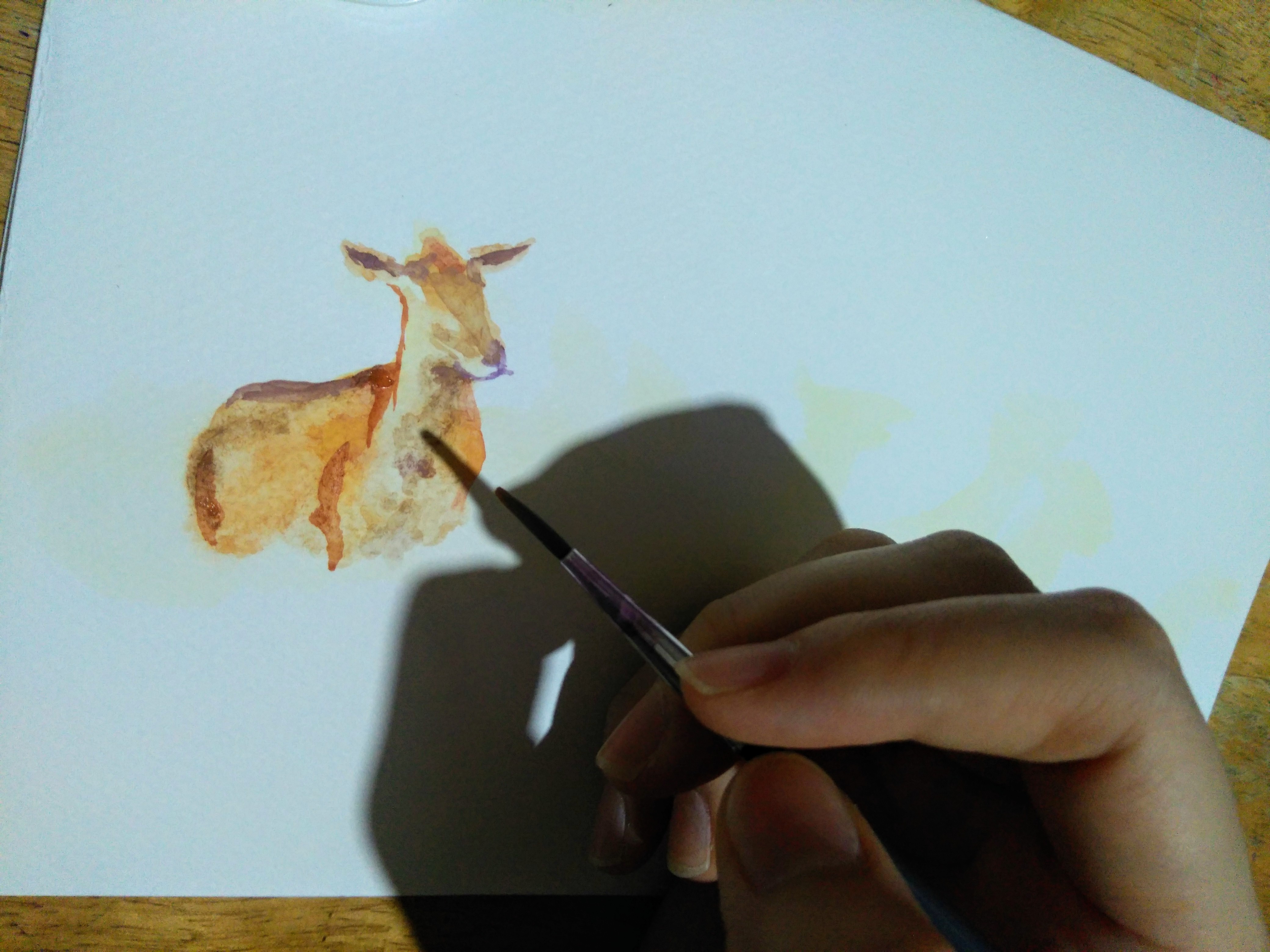 Instead of drawing the other reindeer in the background full blown, I made a shadow of them using light brown, orange and purple.