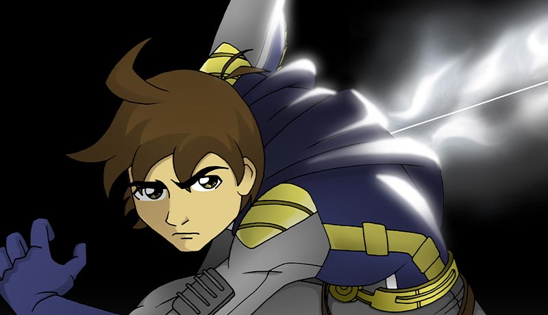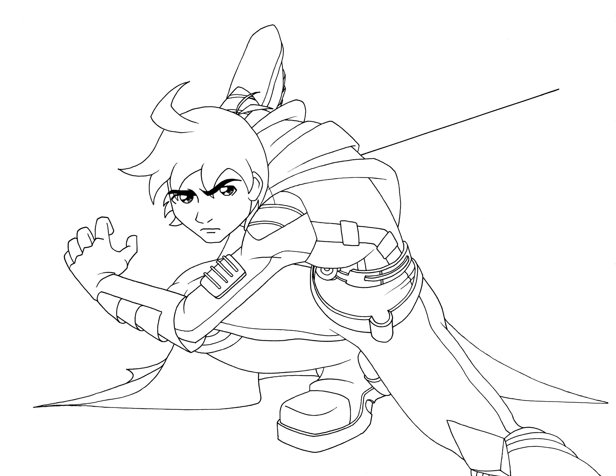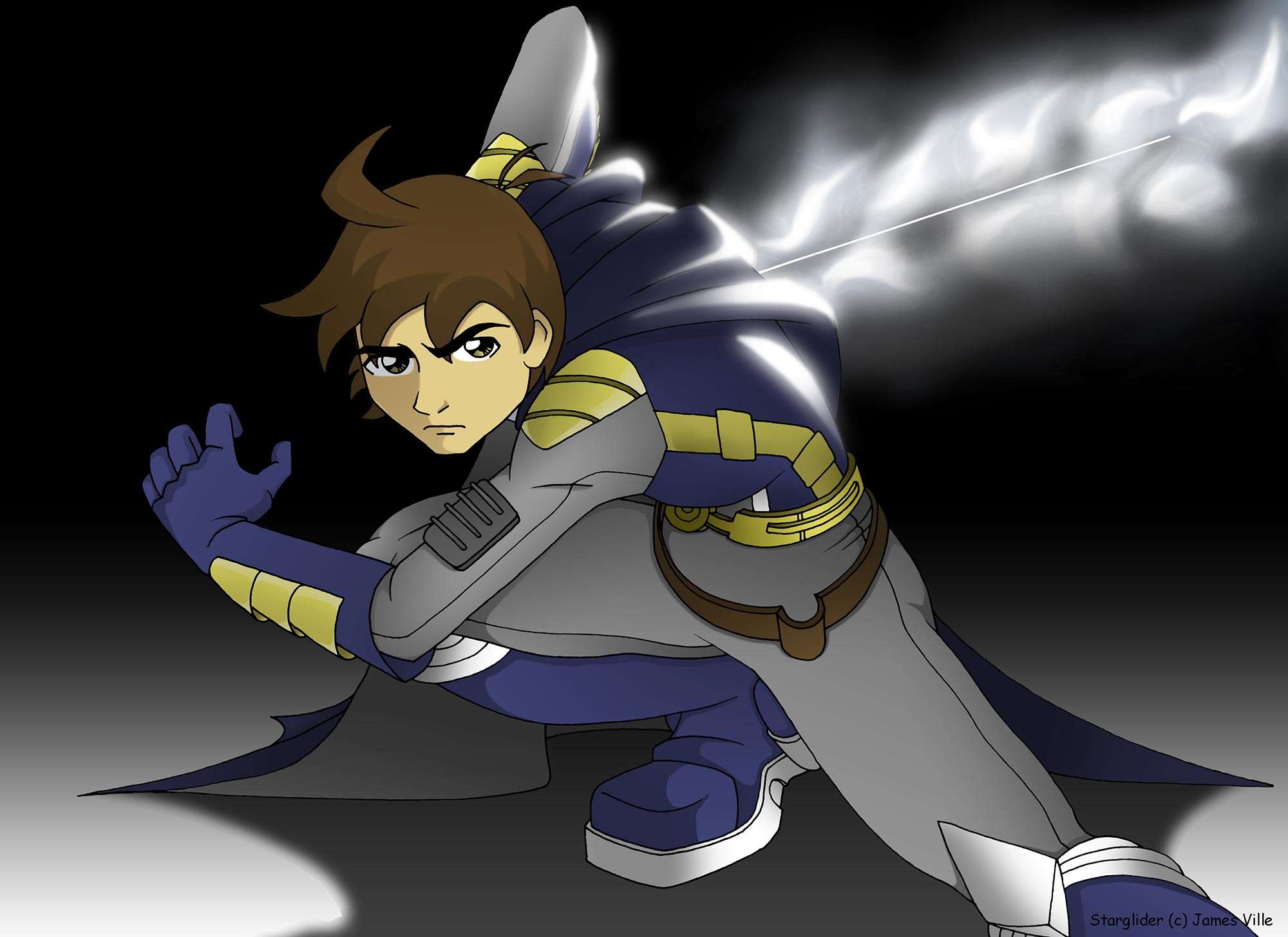 I don't have the images from any other stages of creation like I usually do (ie: draft, sketch, flat colors). I didn't start that habit until many years later. According to the lore, Starglider has a few suit variations. This one is missing his iconic helmet but has additional featuring including a cape and energy sword. No self-respecting protagonist should be without a cool laser sword, am I right?