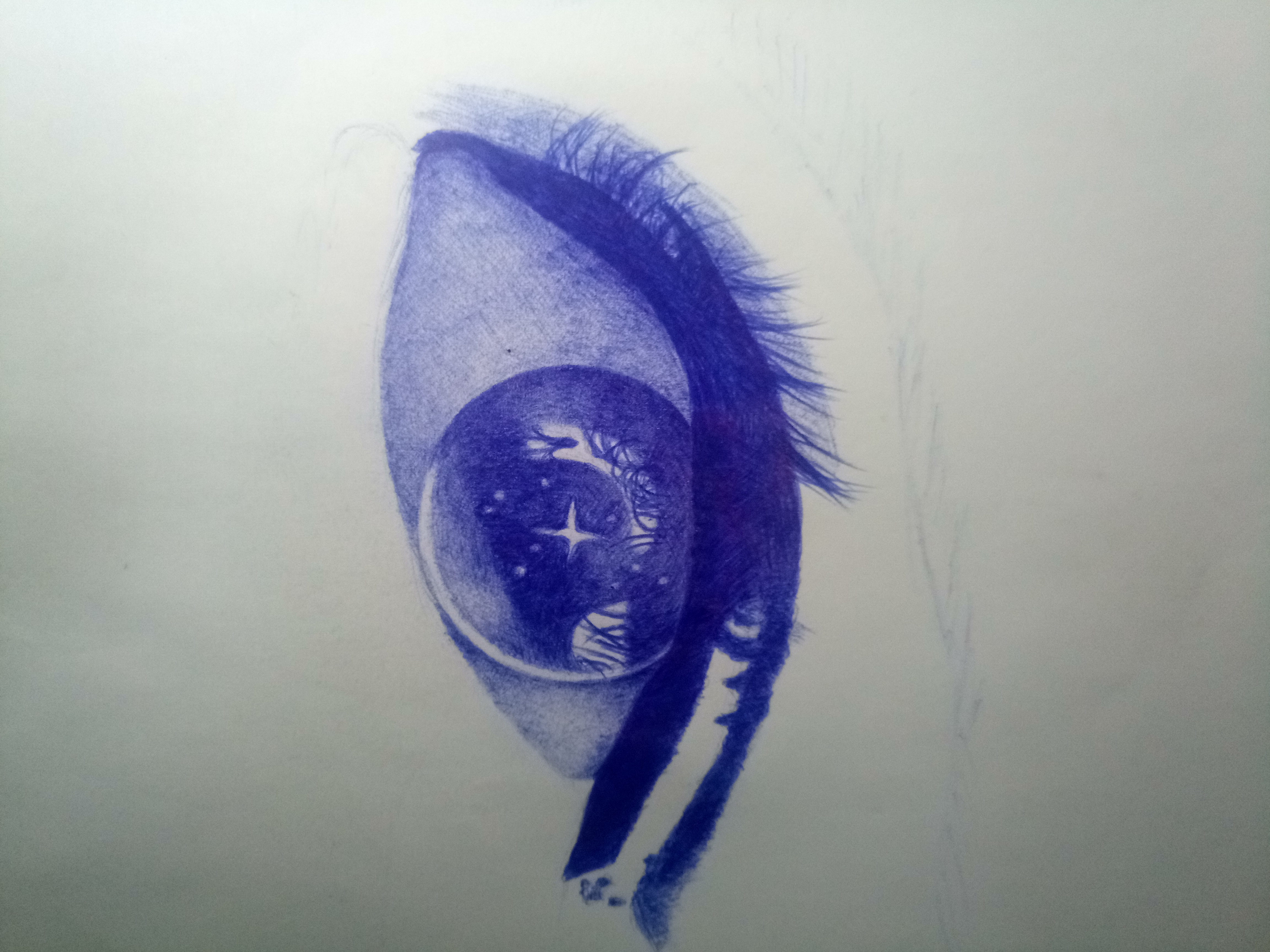 Illustrative Pen Drawing:Eye as a planet(Progress Shot)