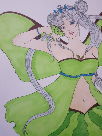 And Lastly, I use the #47 Grass Green for adding details on the wings and on the dress. and this is the final output.
