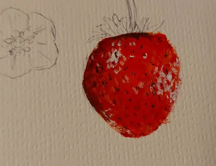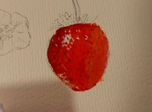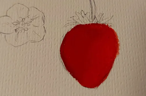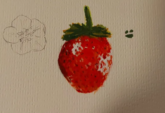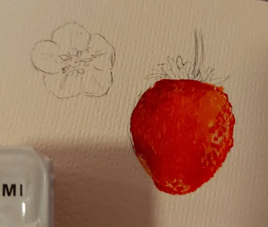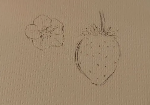 To start, I sketched what I wanted to paint, a strawberry and its flower. Again, I was overconfident and quickly struggled.