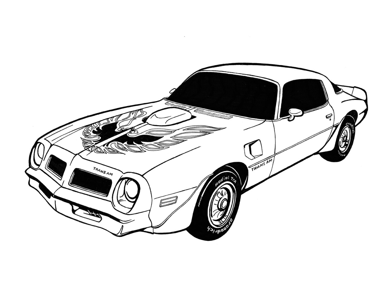 Those first four were drawn with black pens and markers. The next drawing was commissioned. The guy wanted me to draw his convertible Pontiac Firebird. This was also done with black pens.