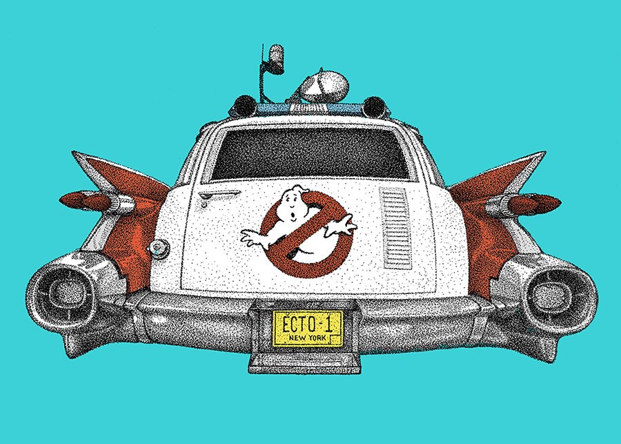 I will end with a fun one! The Ecto-1 from Ghostbusters! This one was done with black pens and then scanned in and colored with Photoshop.