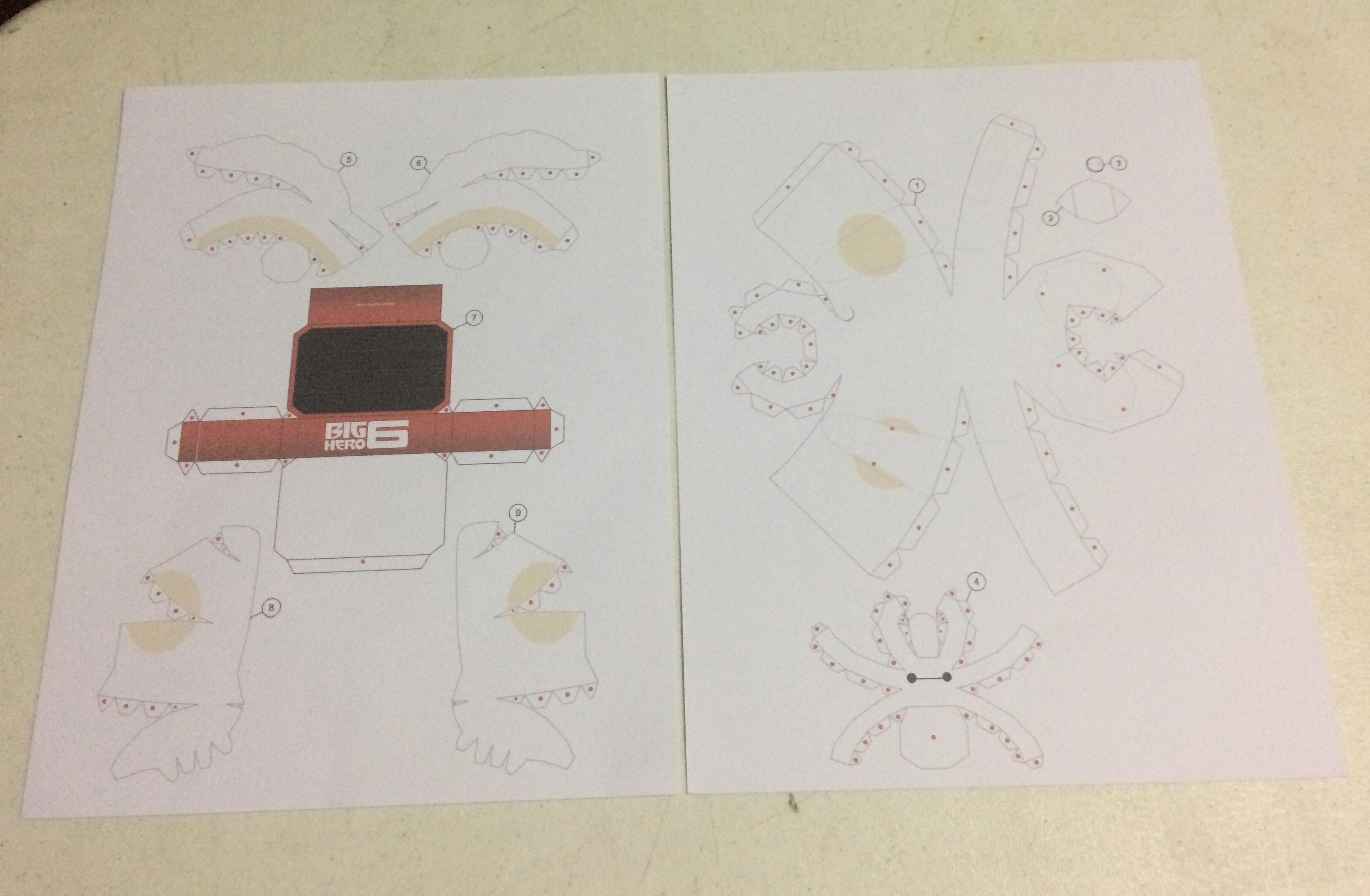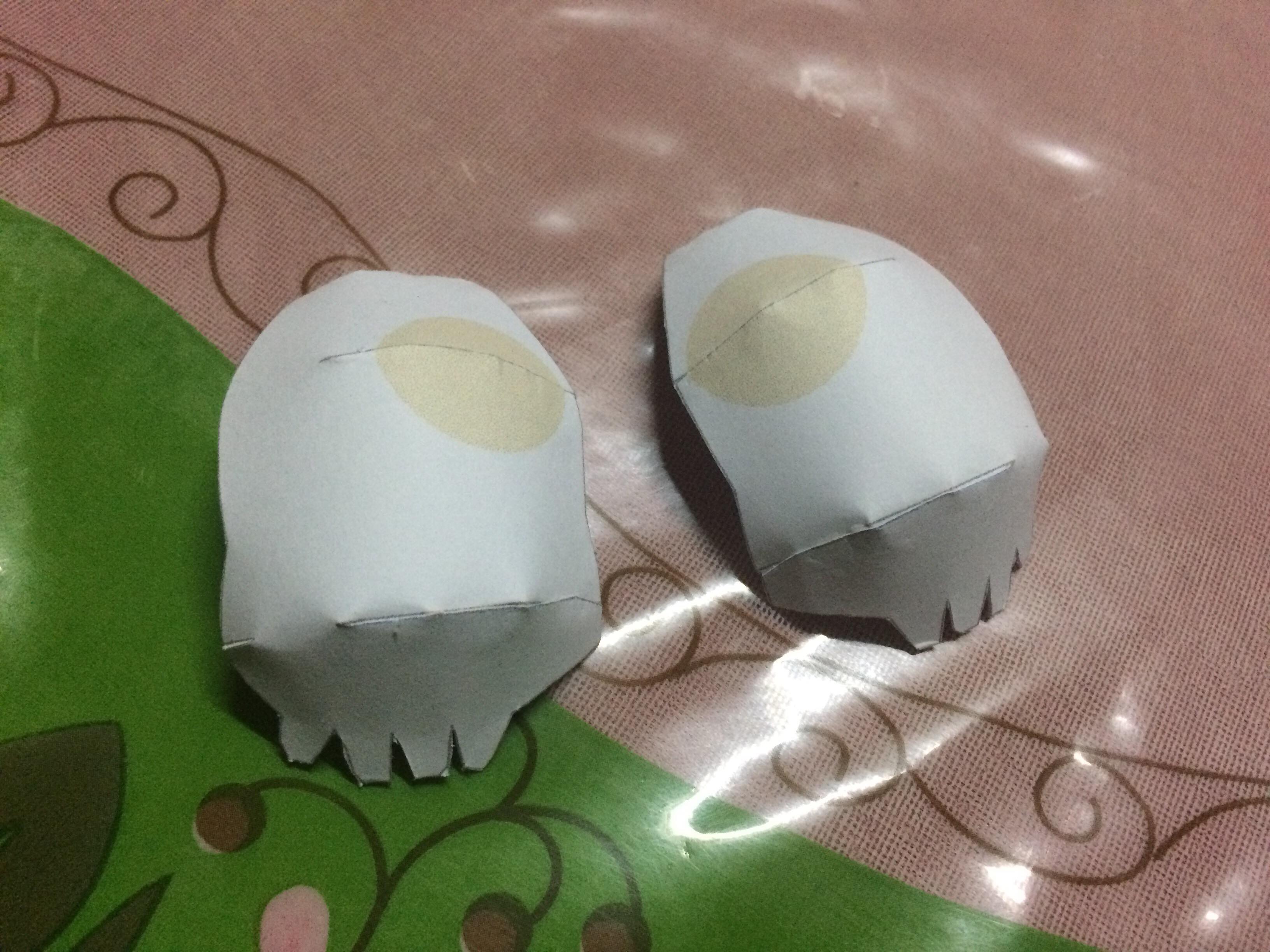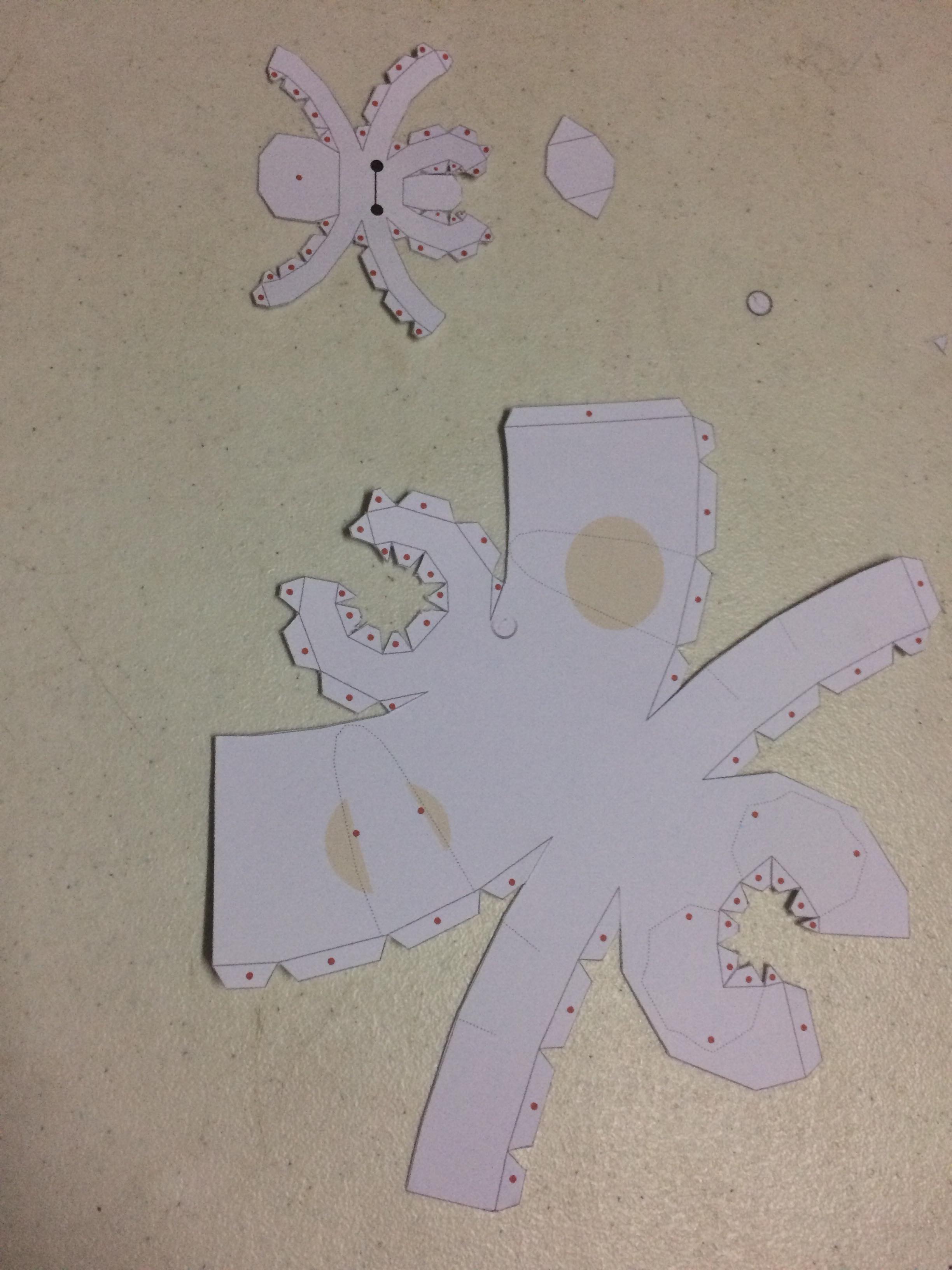 - Folding/Making the parts in 3D Form. I started to Fold the Head. At first the template its like an Octopus then I put a Glue in the Red Dot which you can put it together.
