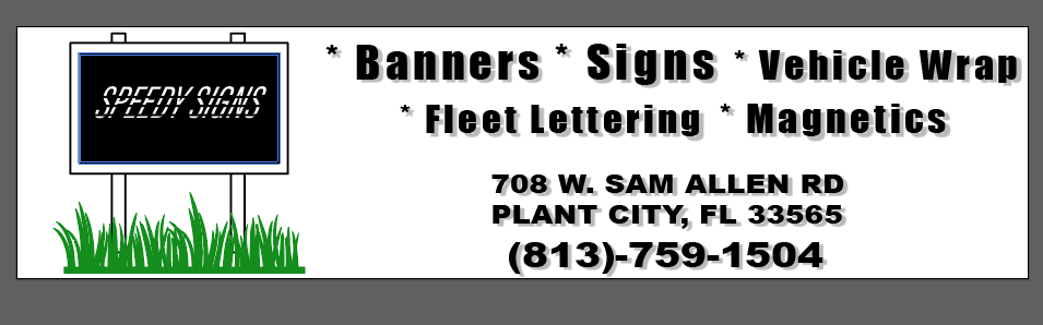 The next designs I came up with was for our sign business. The first one I wanted to play off the idea of "speed", ergo the word speedy signs looks like it is in movement. Yes, I could have went basic, as you will see with a later banner design, but I wanted to add a little flair to it. On the second design for the sign business, I wanted to create a sign with a stake in the ground, yet stretch out the explanation of what we do across the banner, taking up more space and making it look more uniform. I think it came out pretty well.