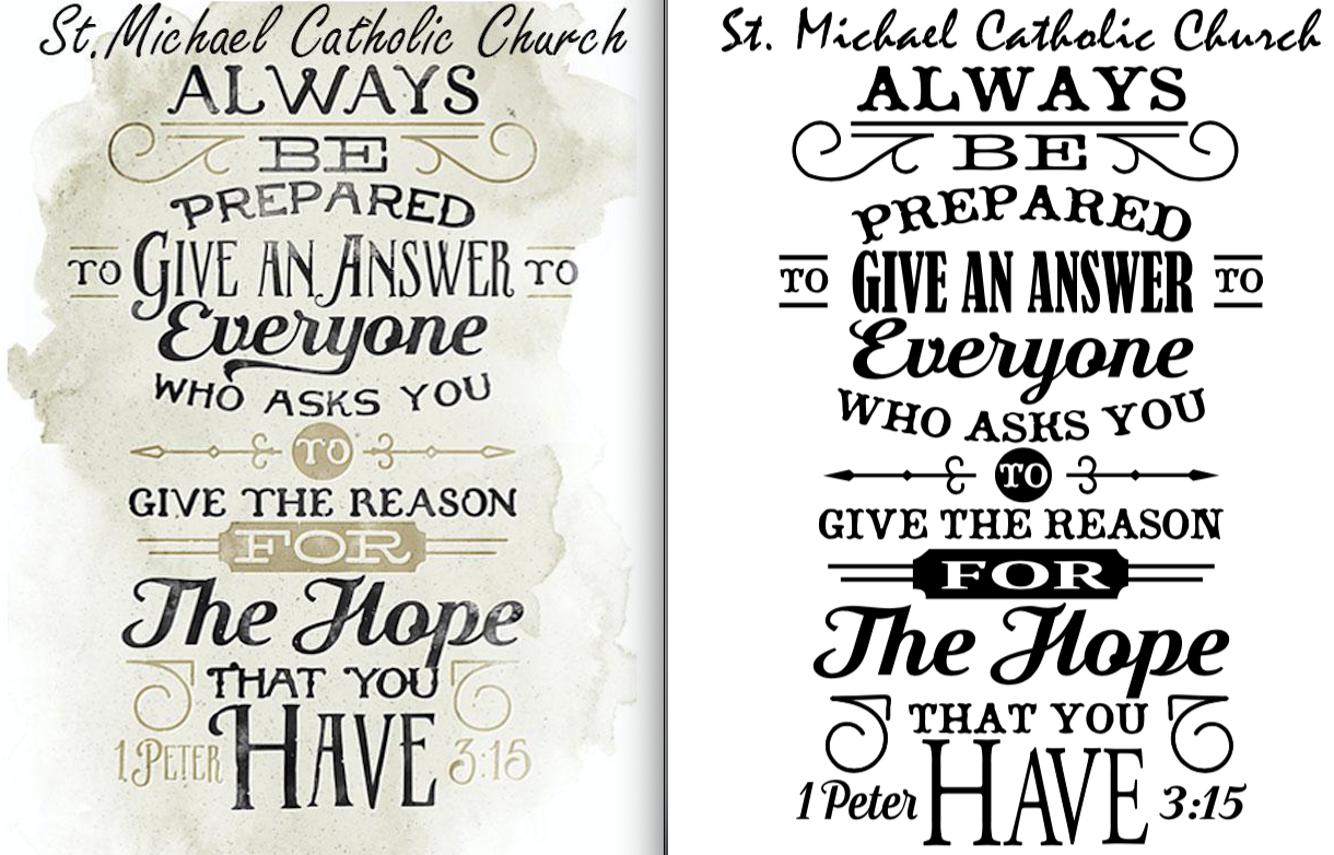 The next project I worked on this week was for a Catholic Church down south of us. They wanted 315 shirts and wanted me to redo a design they found. When this happens, I have to find the exact fonts that design incorporates in order to make the design identical. When doing this, the best sites to use are either fontsquirrel.com or whatthefont.com. They both allow you to take a screenshot of the questioned font and try to find a match.