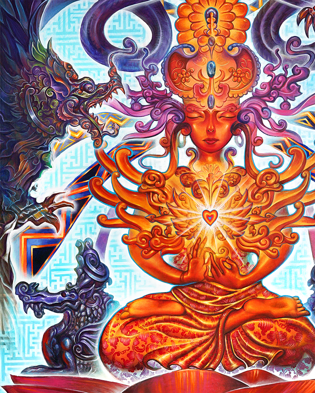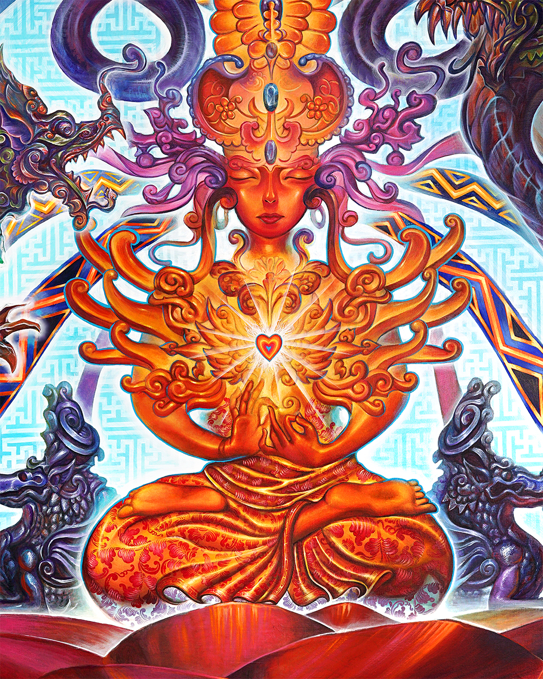 The dragons are our minds, our fears, our doubts, our stories, our egos. But she is equanimous. She pays them know mind. She rests in the heart.