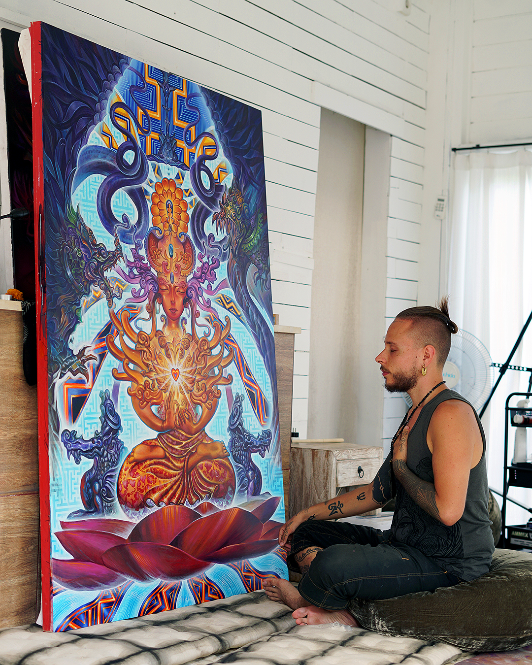 When I first came to Bali in 2016 I started this painting. I participated in a medicine ceremony in Bali. And during the ceremony a voice told me, your art can heal people, you need to make art that is truly beautiful. Your art can bring peace to this world. This is your dharma.