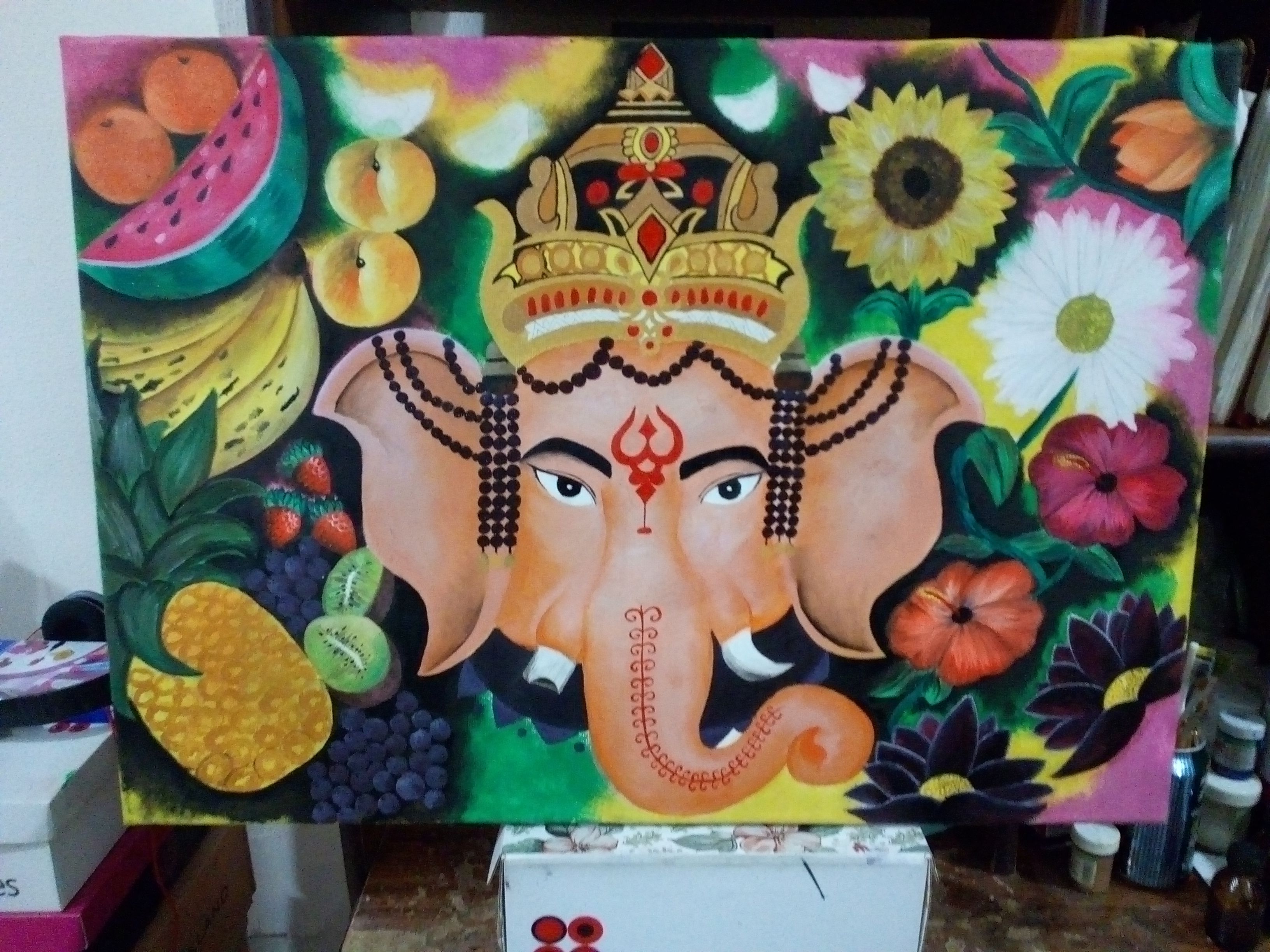 En esta obra quise representar la fortuna y abundancia que trasmite, también es conocido como removedor de obstáculos y benefactor de las cosas imposibles, patrón de las artes y las ciencias. sin duda es uno de los dioses con una historia muy hermosa.