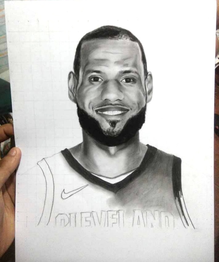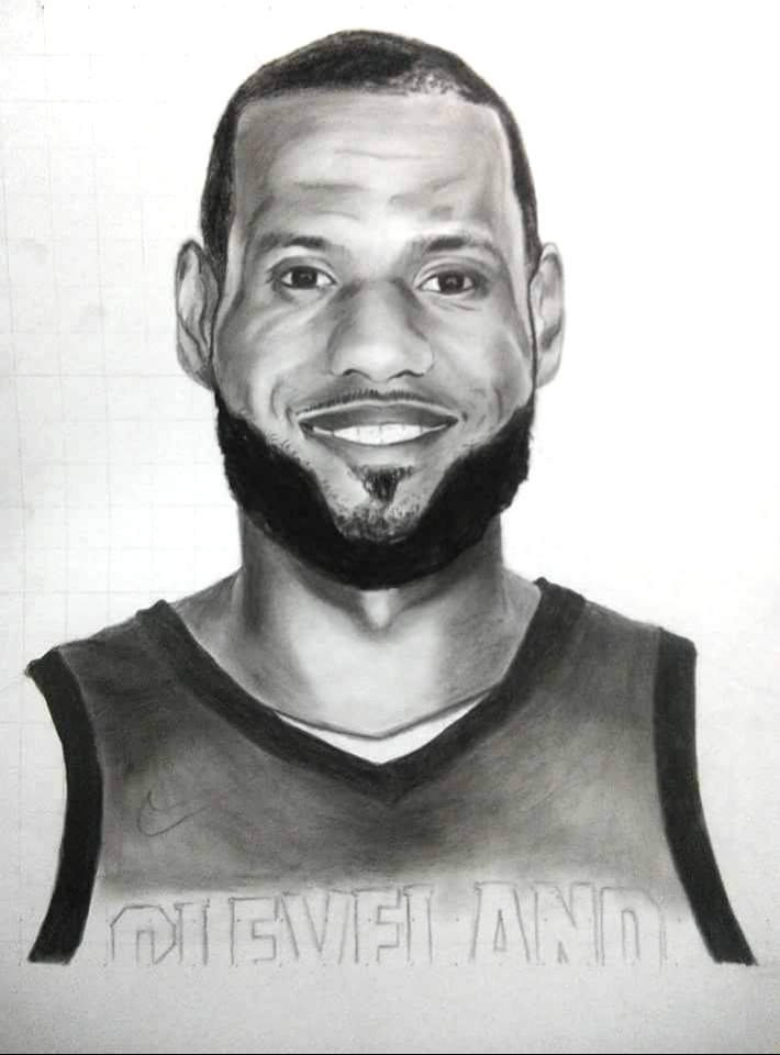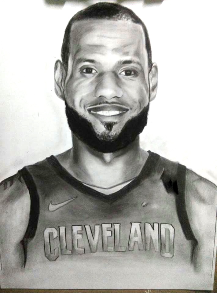 I don't what to do when I don't think first on making a portrsit I wanted to message him on instagram but I don't think he could see it so I just made this portrait for him for the strong support on her career. Lebron James is a very good player and the best among the Cleveland team. He scores above 30 every game of his career. He was one of the asset of Cleveland for them to win. He is wearing a jersey 23 since he started playing in nba. He was a rookie before of Cleveland and directly click during the entire season. Until he rise through a star and joins the all star game.