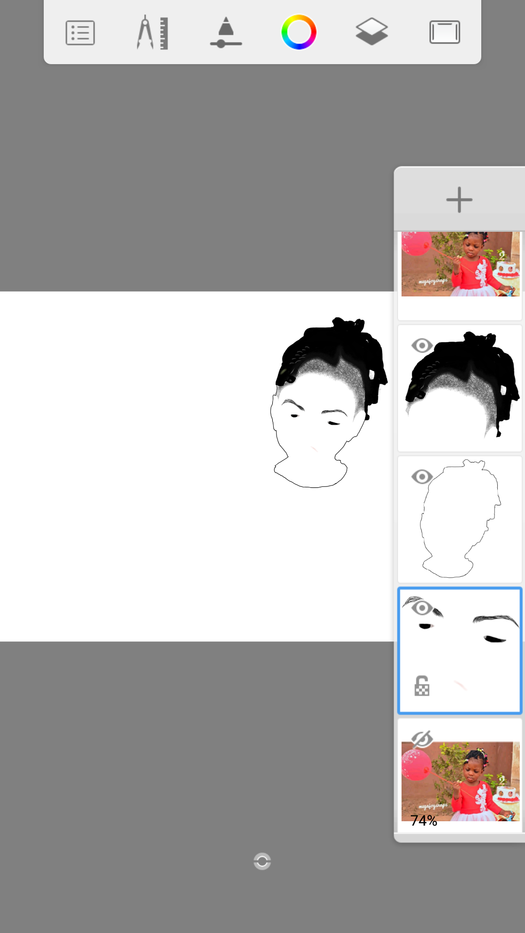 Having done that, I duplicated the picture, obviously to another layer and reduce the opacity of the original picture to 82% or below as the spirit directs you. After doing that, create new layers between the pictures and trace out all the part you wish to trace at first and create more layers for the color blending.