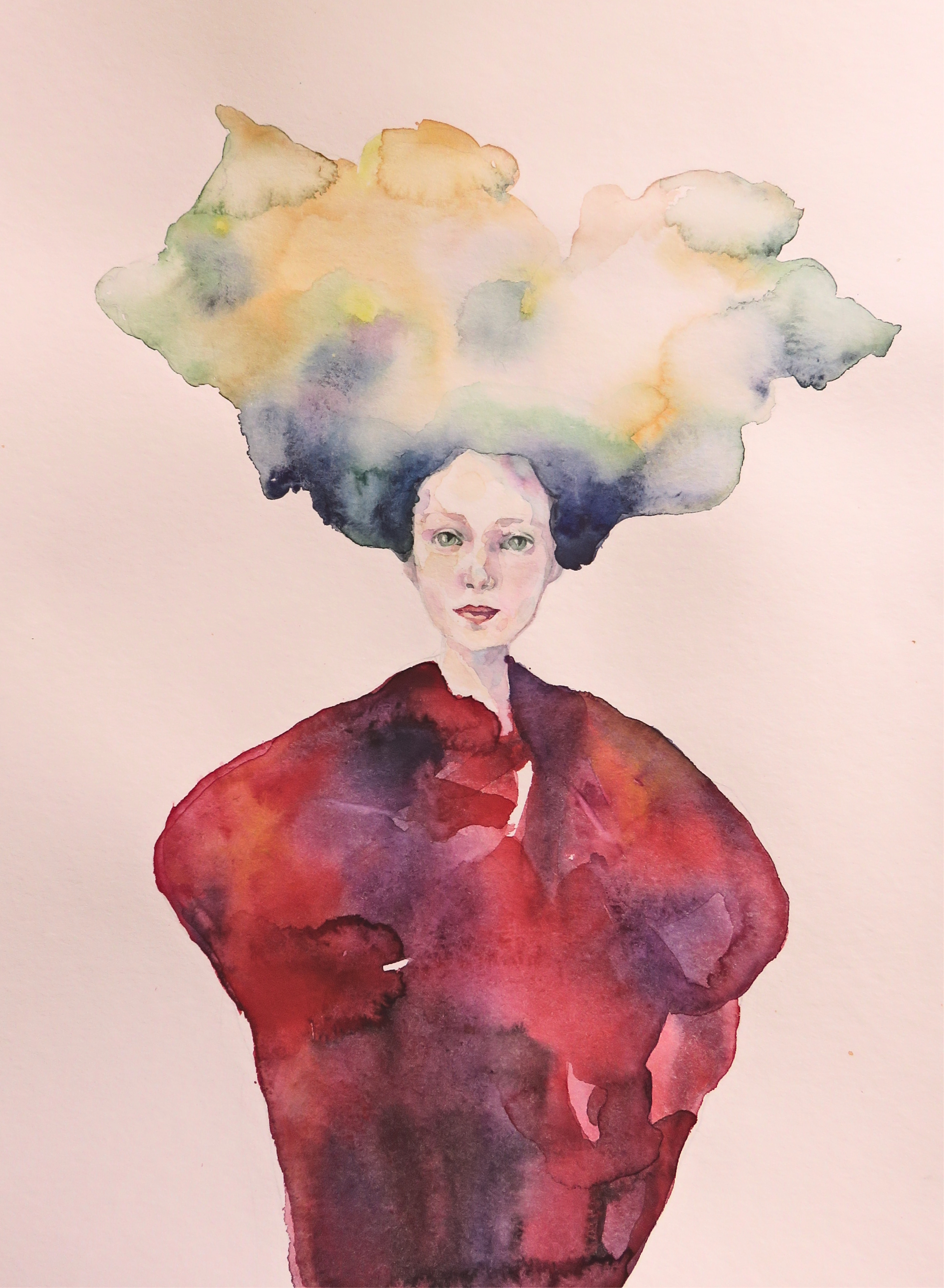 But lately, with this new struck of experimenting with watercolor portraits, red became sort of obsession. How to control it, how to make it not to eat all the rest but still preserve it's strength.