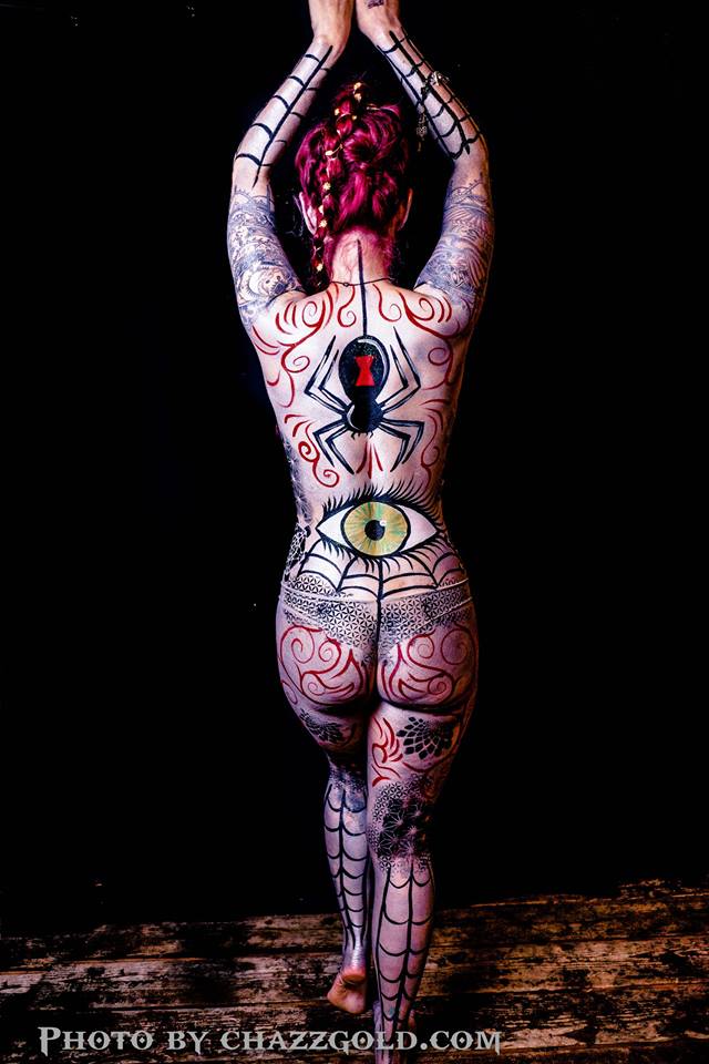This body painting took me 5 hours from start to finish. It was featured at the Unchained Girls Alternative and Gothic Fashion Show at Star Theater in Portland, Oregon!
