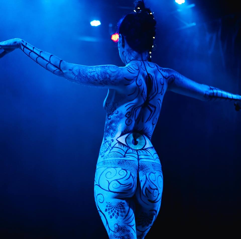 We has an amazing model for this project! She was so fun to talk to during the painting process and she was an amazing belly dancer! She showed off the body paint so well on stage, it was a show stopper!
