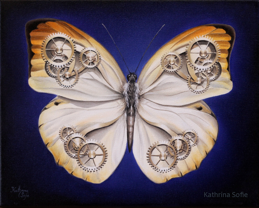 So beautiful ! The patterns on the butterfly wings have become gears... A creature of both organic and metallic !!! Lovely painting, @kathrina-sofie <3
