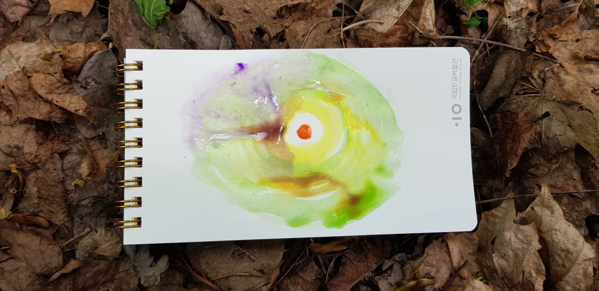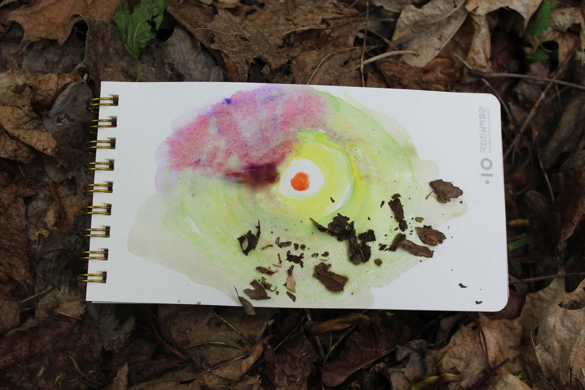 At the end I felt the desire to crush the leaves that lay next to me and place them at the bottom of the picture. I used what was unexpectedly available, a piece of nature and created such an unusual painting.