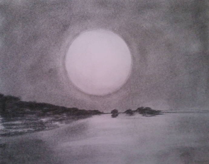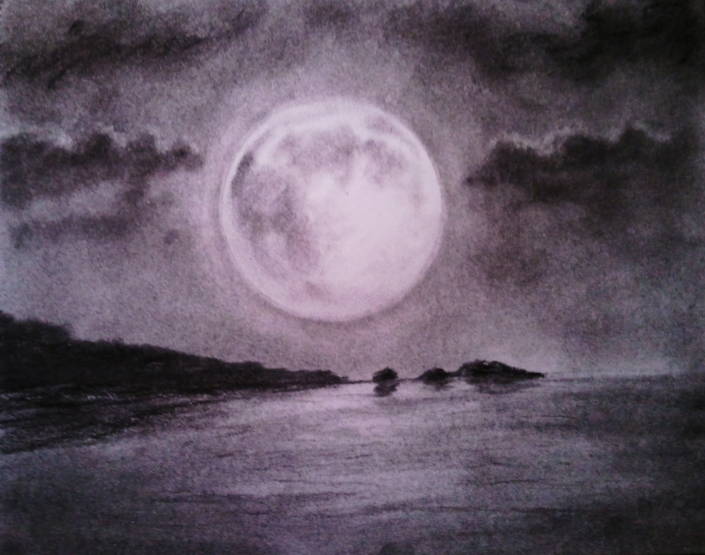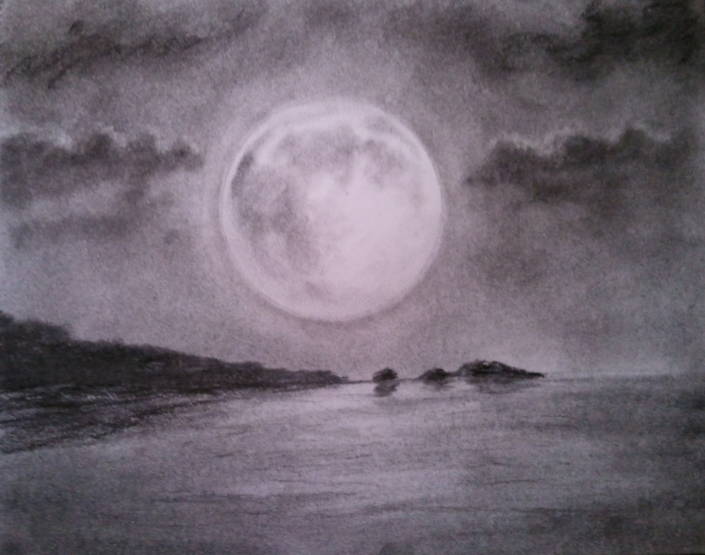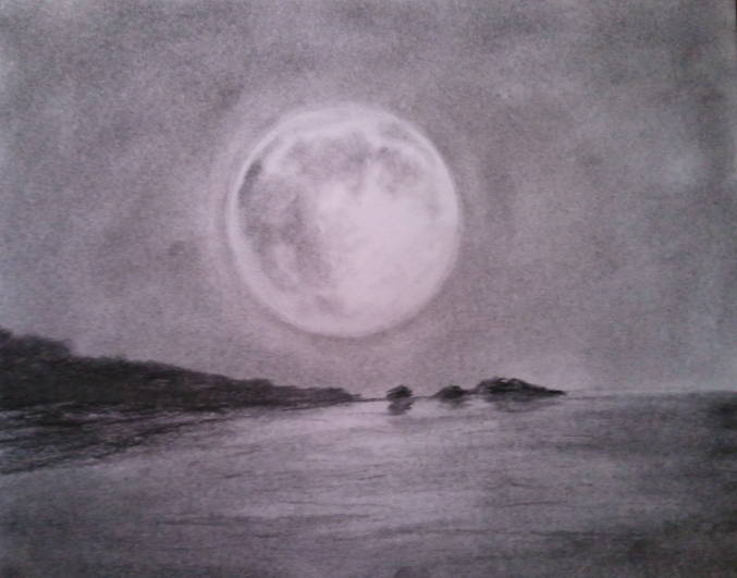 Full moon charcoal sketchkcgm (55)in #art • 7 years ago It's getting quite chilly now and the nights are longer which puts me in the mood for some darker pics. done with charcoal (8x6") Process. #creativecoin #palnet #neoxian #oc