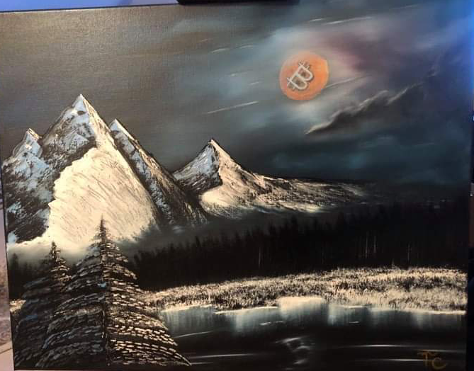 i did a picture last night of btc in the moon and reflection in the water on canvas 50x40 oil painting inspired by bob ross enjoy happy people :D happy december here s the link to it https://opensea.io/assets/0x60f80121c31a0d46b5279700f9df786054aa5ee5/75492