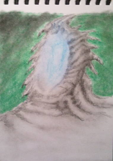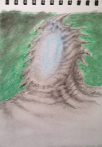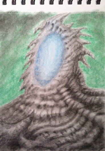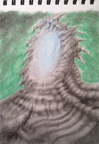 Alien landscape design done with pastels and pencil.
