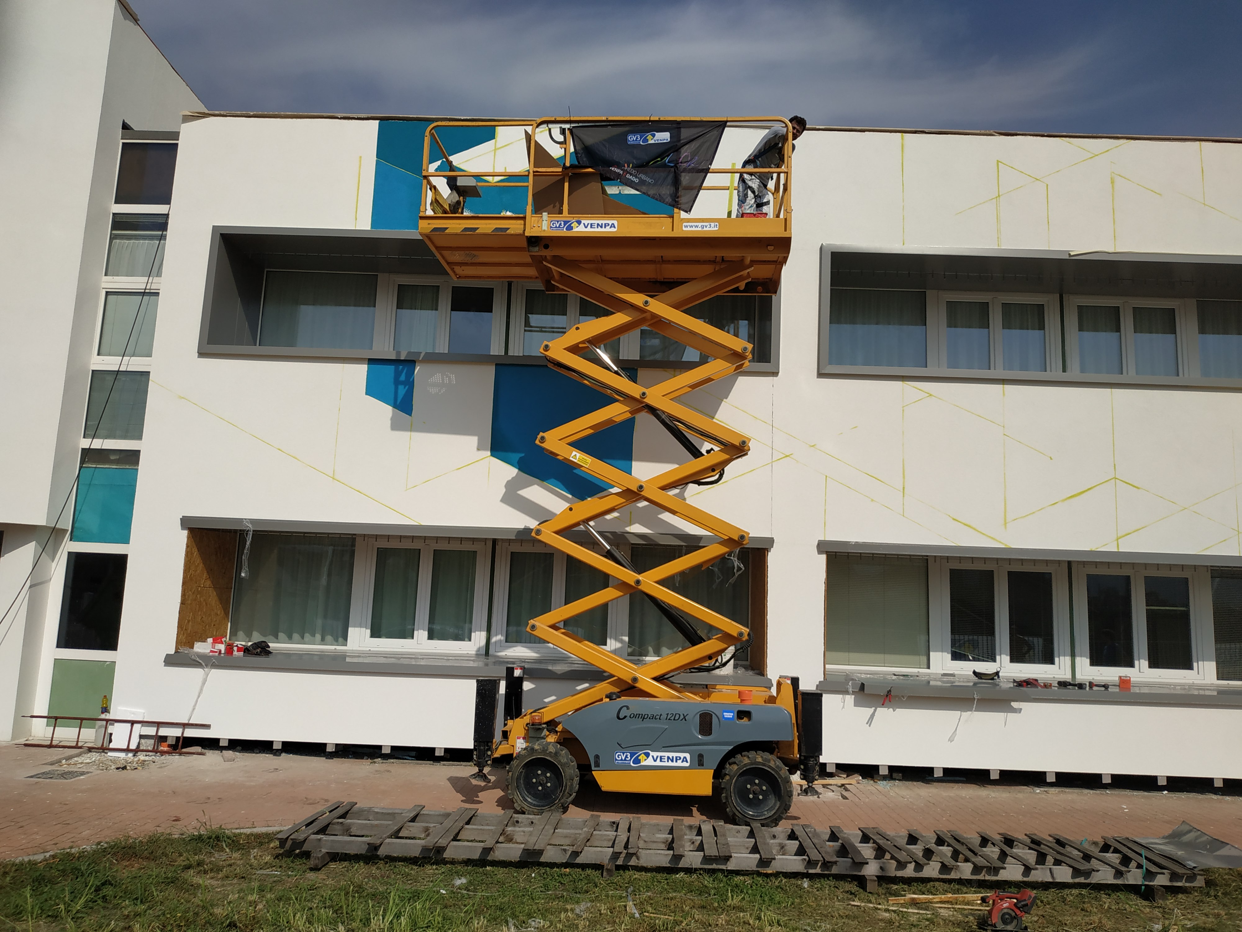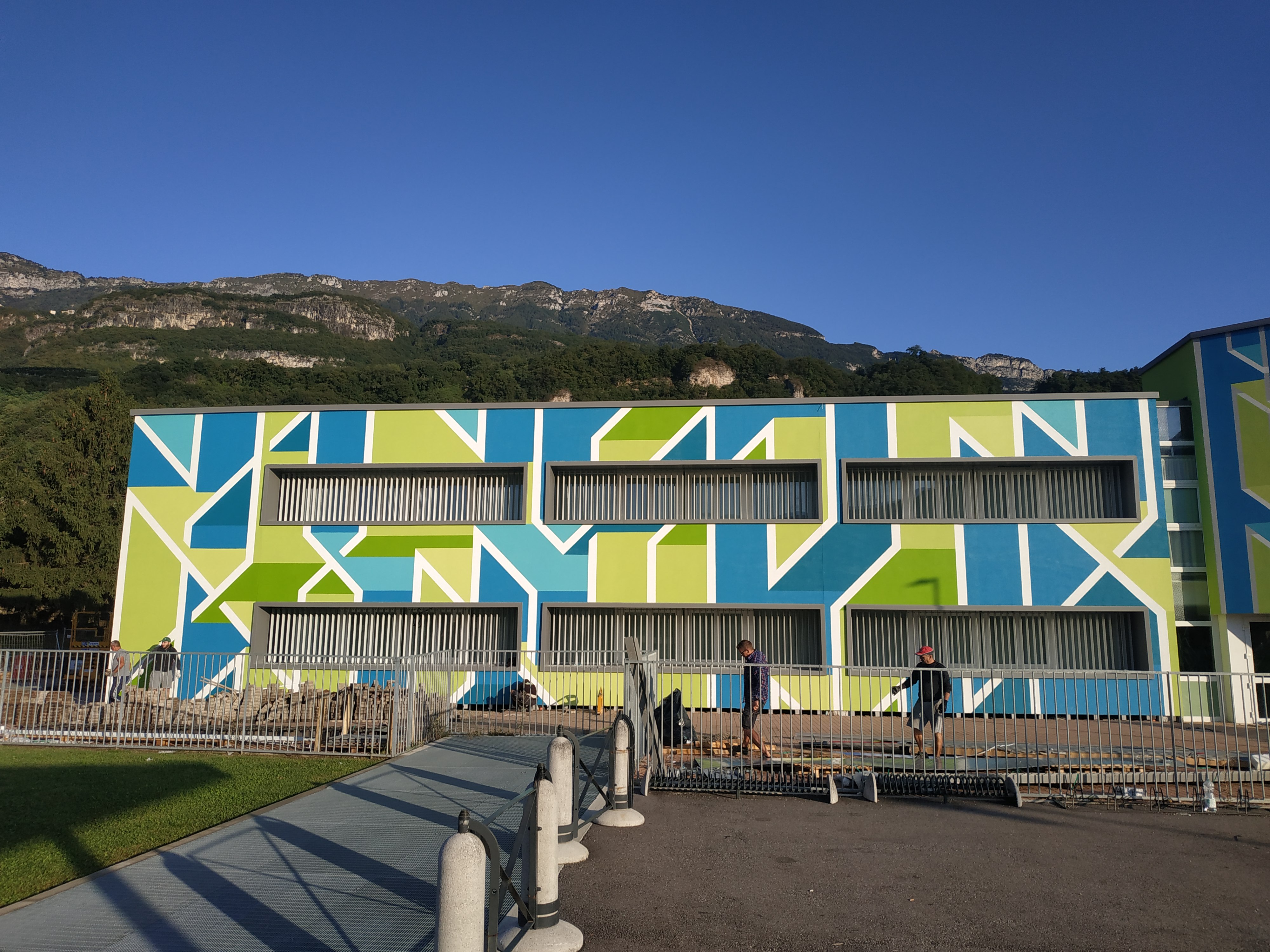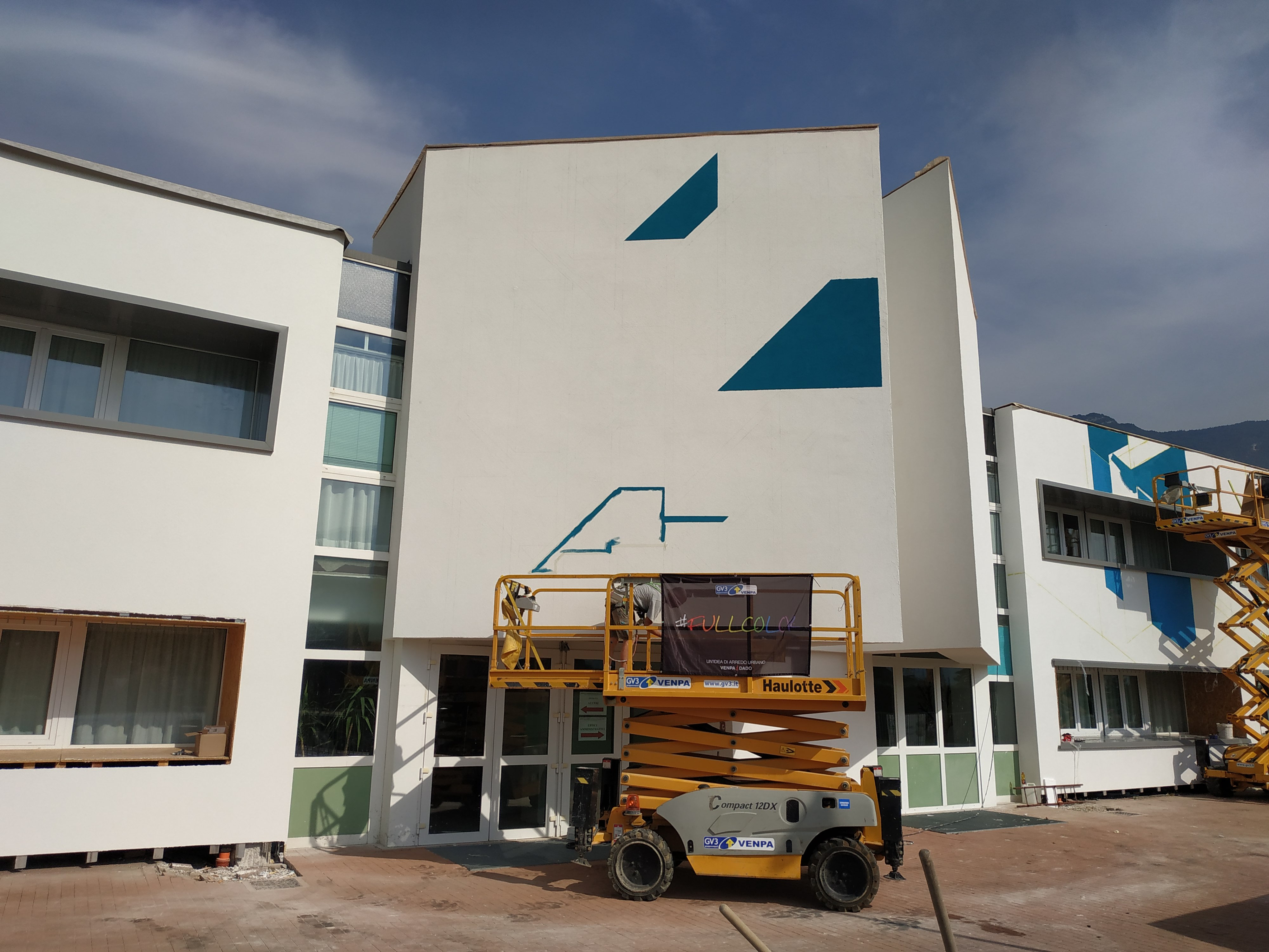 No, no! Non voglio annoiarvi con la storia del cantiere ma bensì come si è concluso questo lavoro pubblico che riguarda la scuola “Anna Frank” di Villa Lagarina di Rovereto in Trentino. Per chi non lo sapesse sono un professionista nel settore edile e la mia specializzazione è la conduzione di cantieri per conto di ditte edili, per lo più sono lavori pubblici e all’interno delle procedure di appalto di questa tipologia esiste per legge una quota da “investire” in opere d’arte. Quota che è una percentuale sulla stima dei lavori, e bene o male si aggira sull’1%.... sembra poco ma ormai certi lavori come ad esempio quello che abbiamo concluso di quasi un milione di Euro, possono portare a valori di 10.000€ da mettere a disposizione per queste iniziative artistiche. L’amministrazione comunale ha scelto di affidare a Joys e Dadoferri il compito di eseguire l’opera.