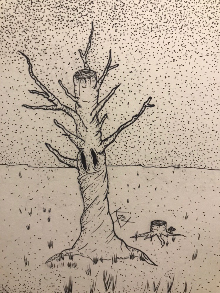 At first I wanted to draw a fallen tree next to me, but refused to: