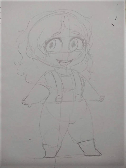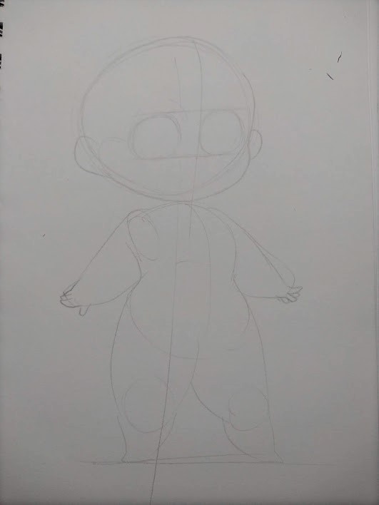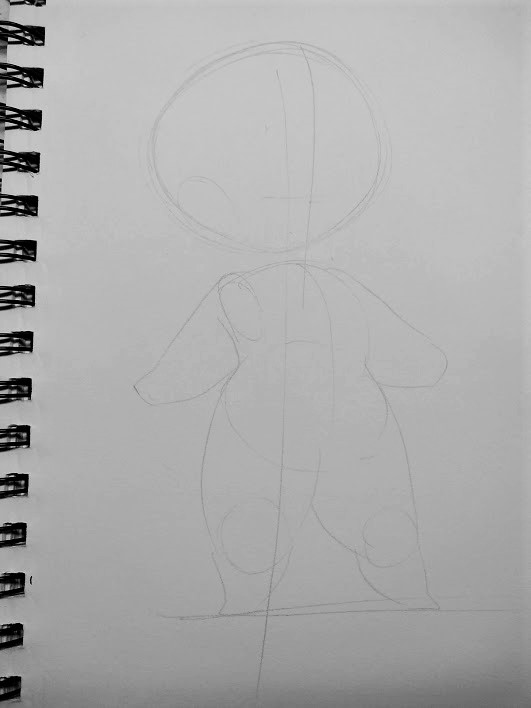 The first step is to make a rough base shape, this will help you map out the body of a cheeb and it keeps things proportional. The circles to the side of the head is where the ears will go and that's where the chin will meet with the ears.