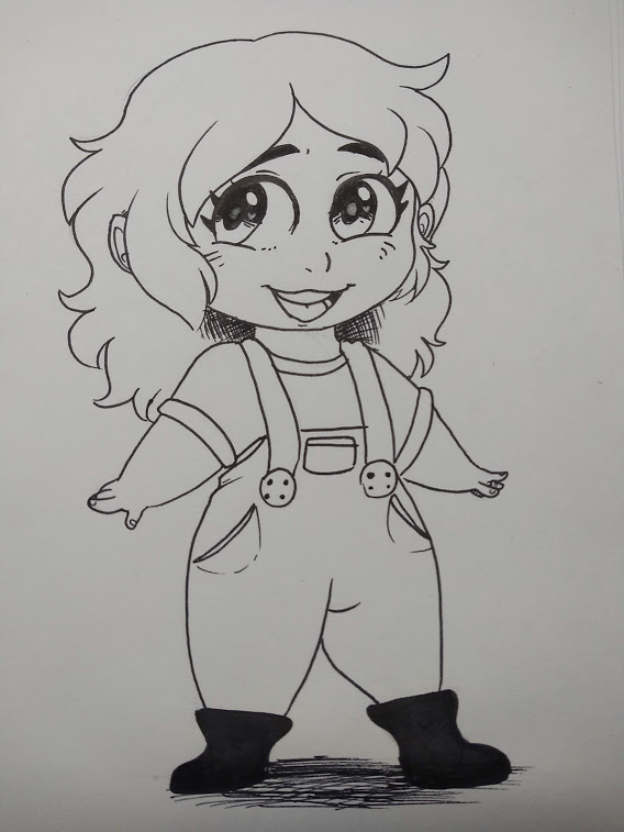 And with the final stage of inking, we want to add little crosshatches in the hair to give it a sense of depth. I also used a white gel pen to give the little extra details in his eyes to make him even cuter.