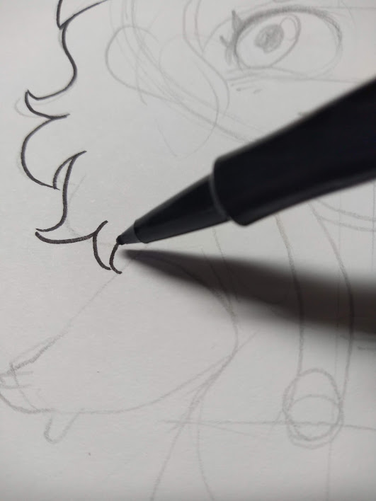 Make sure to ink with a light hand. You can get thinner strokes with less hand pressure and thicker strokes with hard pressure, whatever style you want to do, make sure you are mindful of your pressure. It takes practice to train your hand to remember stroke patterns, so it's always good to draw circles on some scrap paper with your pen before inking.