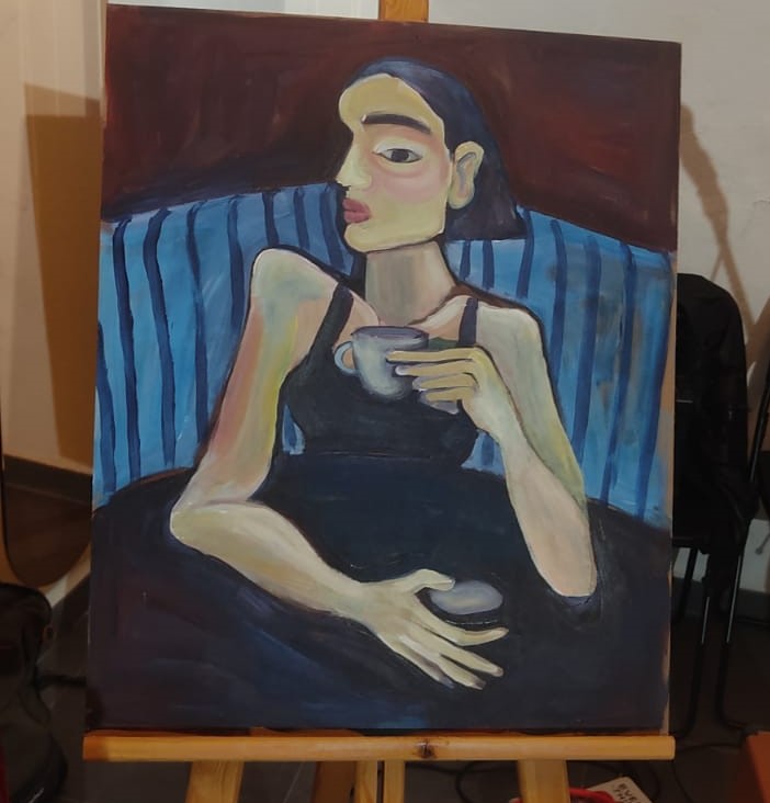 Ésta es una obra realizada en directo durante la presentación del libro. Me pareció increíble cómo era capaz la artista de evadirse delante de tanta gente y poder crear su arte en su máximo esplendor.
