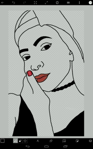 PASO 3: Aquí retoqué el color de los labios, utilicé un color mas fuerte y lo difuminé, también coloreé parte del atuendo, la franelilla, collar y el esmalte de uñas.