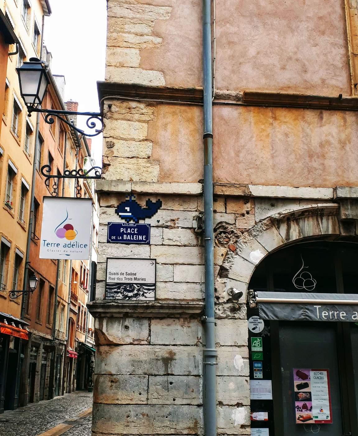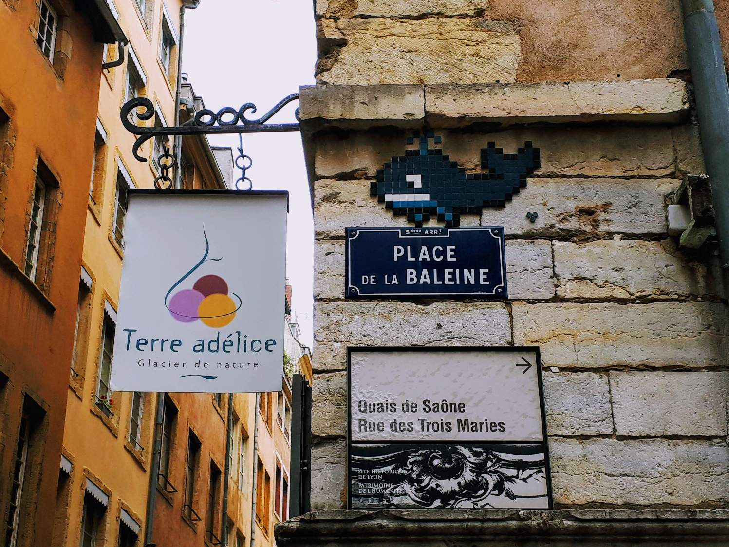 I saw the pixilated whale in the image below in the old town as well. It sits above a street sign that reads "Place of Whale" in French. Clever. I quite like this piece. Its definitely in my top ten favorites.