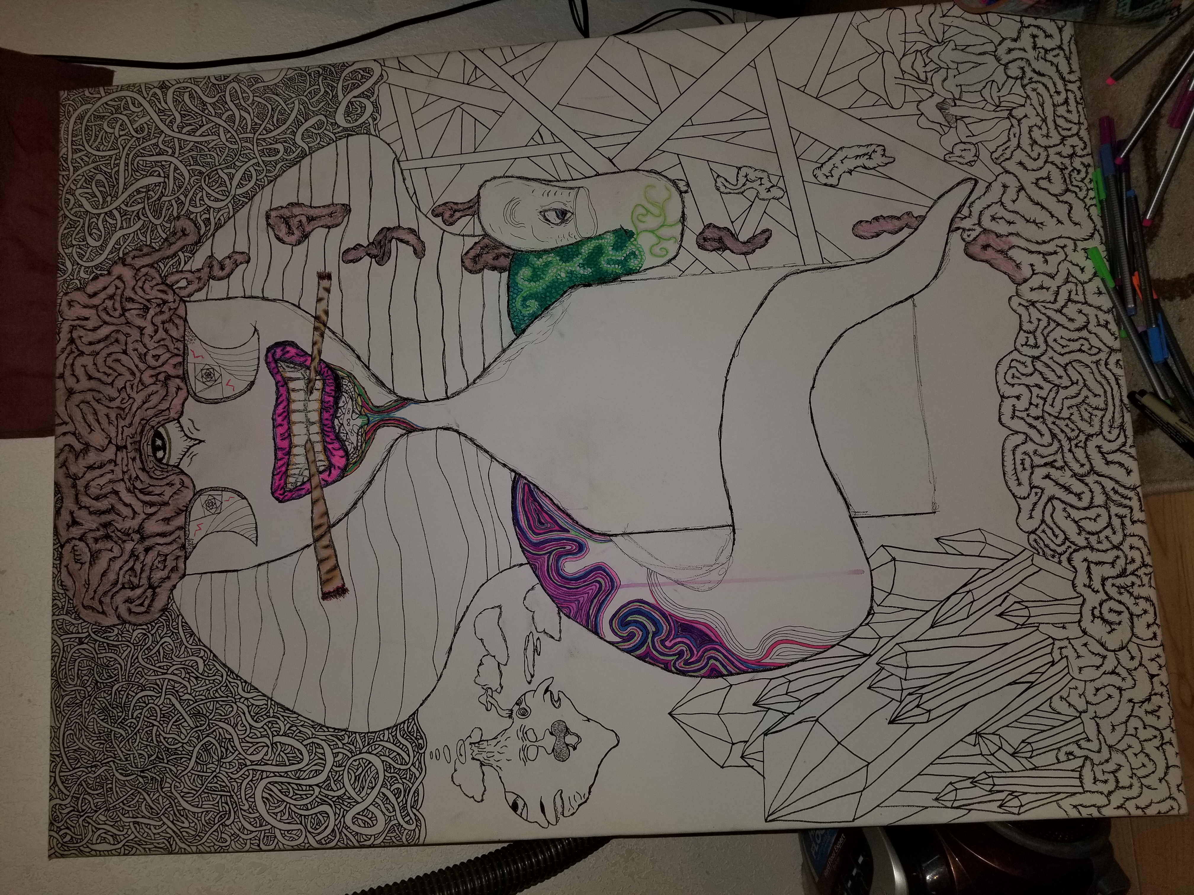 So this is my 1st large scale piece that im working on. Currently around 120 hours, and tons more as im using fineliner pens to shade.