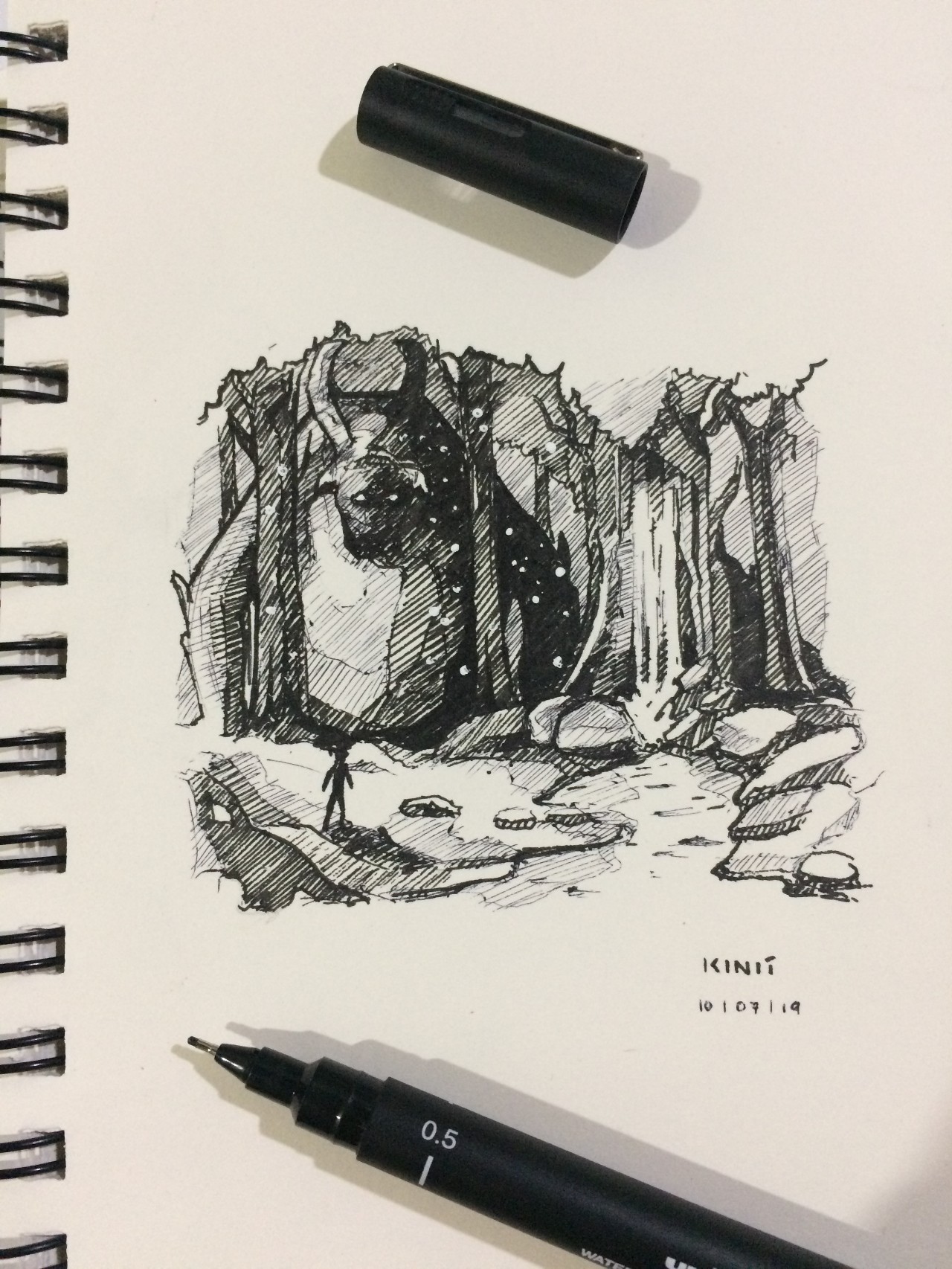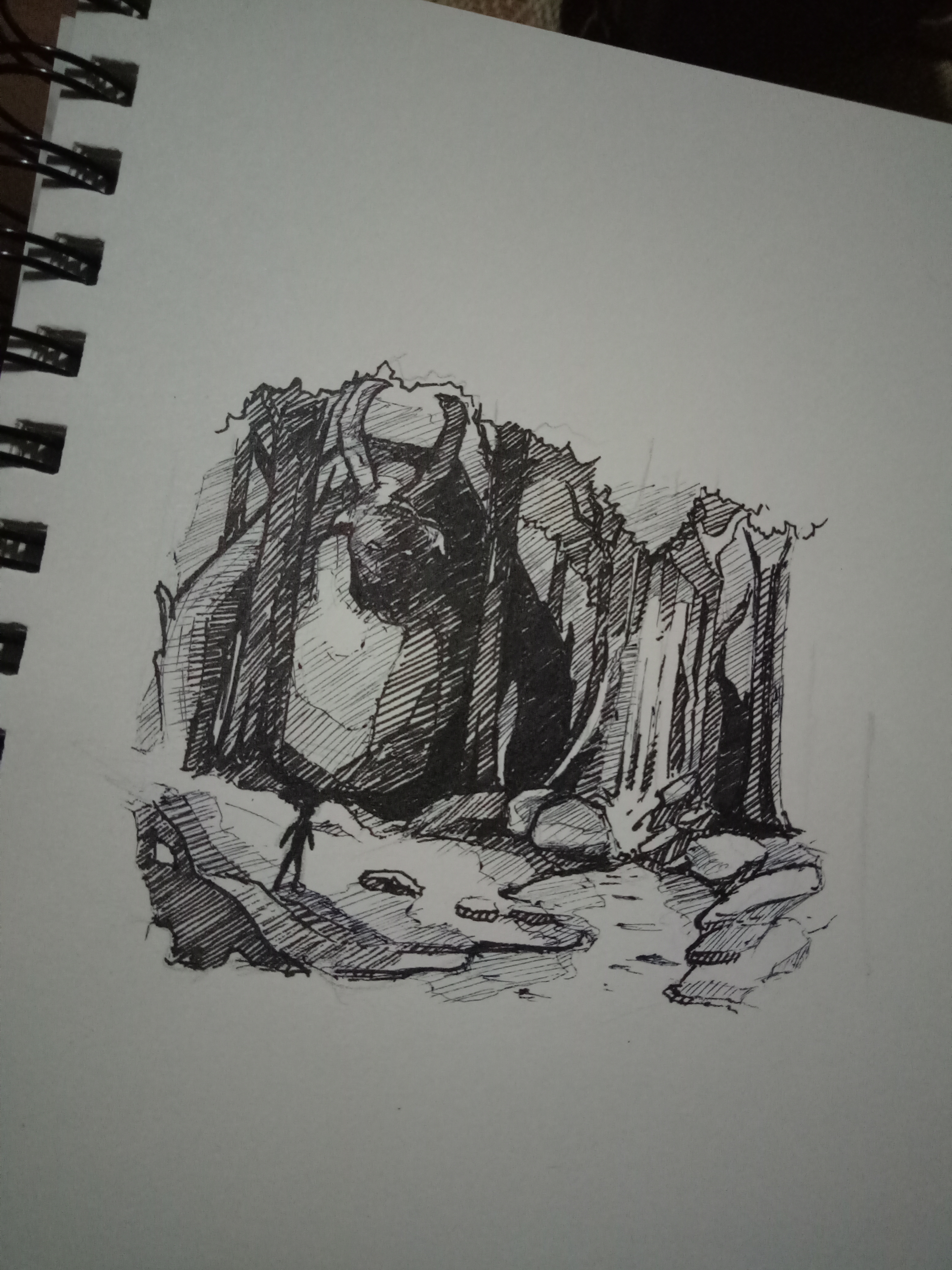 I didn't see the guardian of the forest at first as I was looking at the overall image of the forest ~ And then I saw him. He has a really sinister presence, blending with the forest. So it was great to read that he was actually a protector of the forest's fauna. Lovely line work and very enchanting drawing @ligarayk. ♥︎♥︎⚖️♥︎♥︎